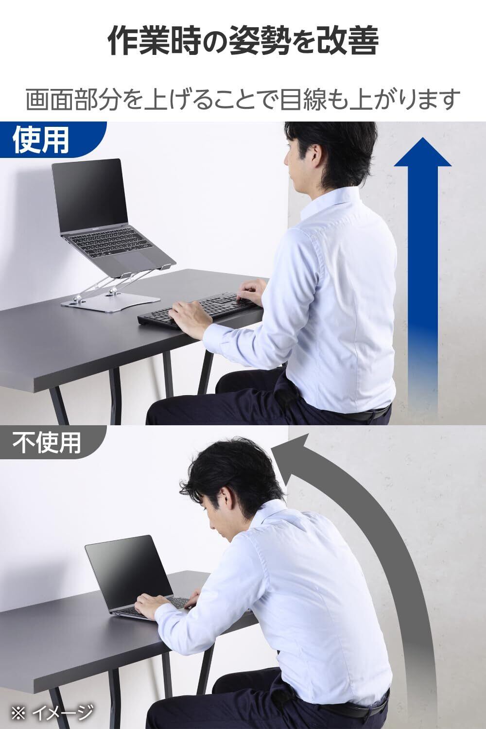 ノートパソコンの高さを変えることで目線を上げることができ、作業中の姿勢を改善します。