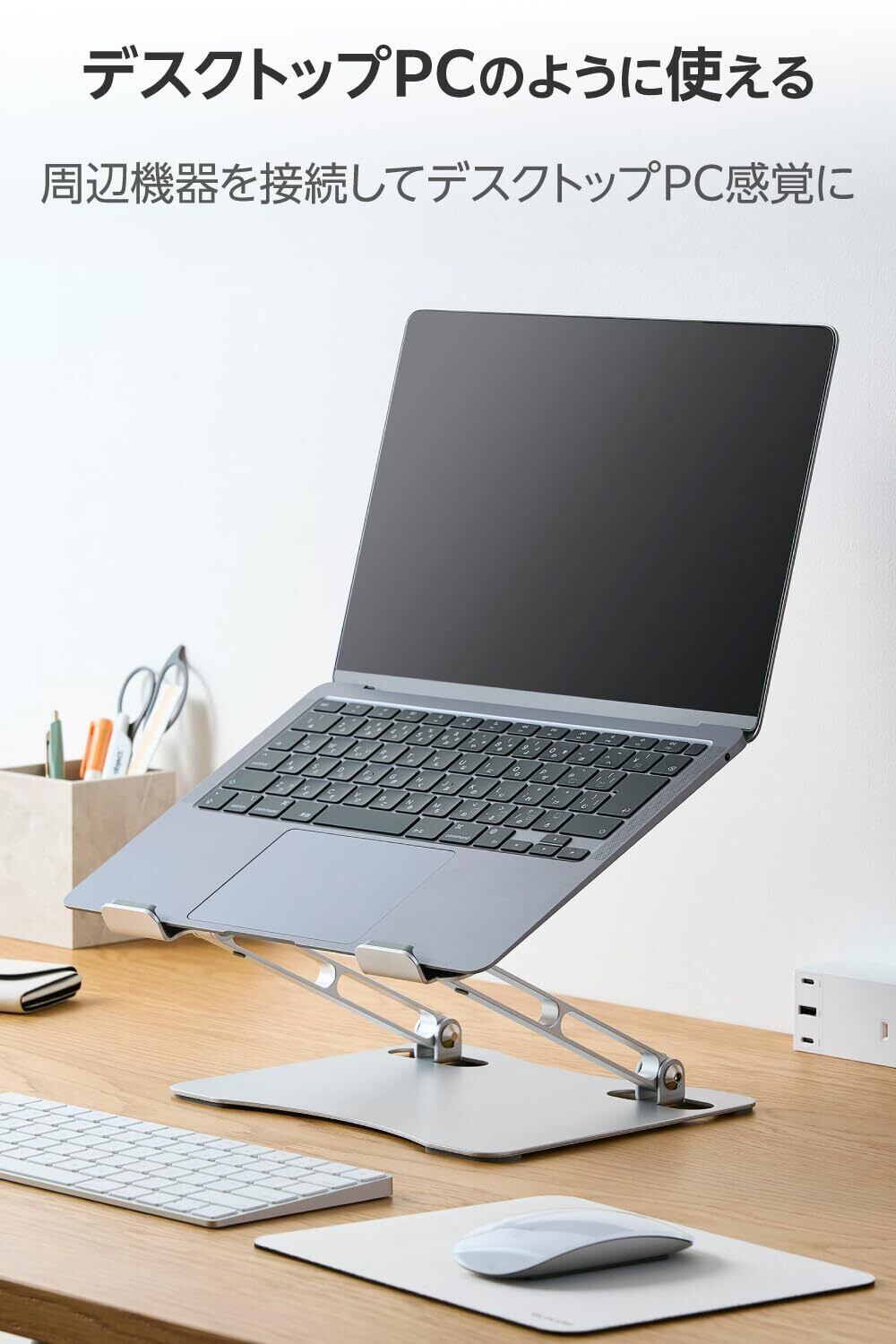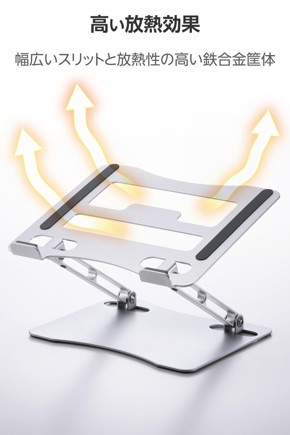 適した高さ・角度に無段階調整できる折り畳み式ノートパソコンスタンドです。