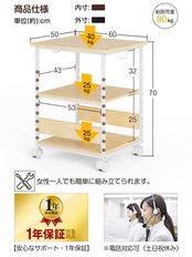 【デスクと並べて使える70cmの最適な高さ設計】一般的なデスクと同じ高さ70cmでデスク横に最適な3段のプリンター台です。デスク横に設置して、サイドデスクや補助作業台としても活用可能。プリンターを手の届く範囲に置くことで、作業効率が飛躍的にアップ。さらに、プリンタラックとしてだけでなく、パソコンデスクや作業用サイドワゴンとしても幅広くご使用いただけます。