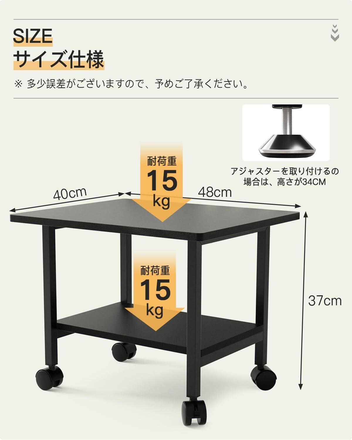 DEWEL プリンター台 ラック 幅48×奥行40×高さ37cm プリンターカート 2段 キャスター付き アジャスター付き 机上台/下両対応 オフィス/ホーム用