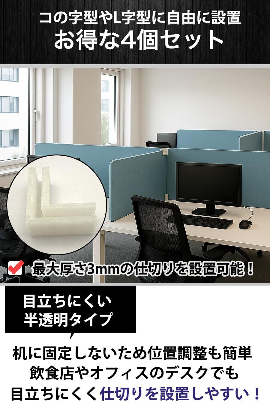 AllBright パネルジョイント パーテーション ジョイント 仕切り 板 接続 設置 固定 卓上 デスク L字型 厚さ3mm対応 4個セット 半透明
