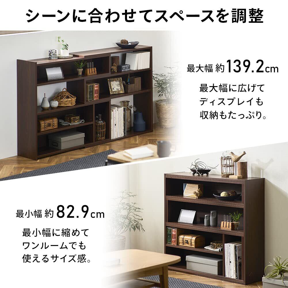 【新着商品】アイリスオーヤマ(IRIS OHYAMA) 棚 ラック 伸縮式 オープンシェルフ 幅83~139cm 高さ80cm 奥行24cm ロータイプ ウォールナット 伸縮式で幅も角度も調整可能 奥行き24cmのスリムなラック 間仕切りやパーテーションとしても使える WSLR-800 | SmartLiving+
