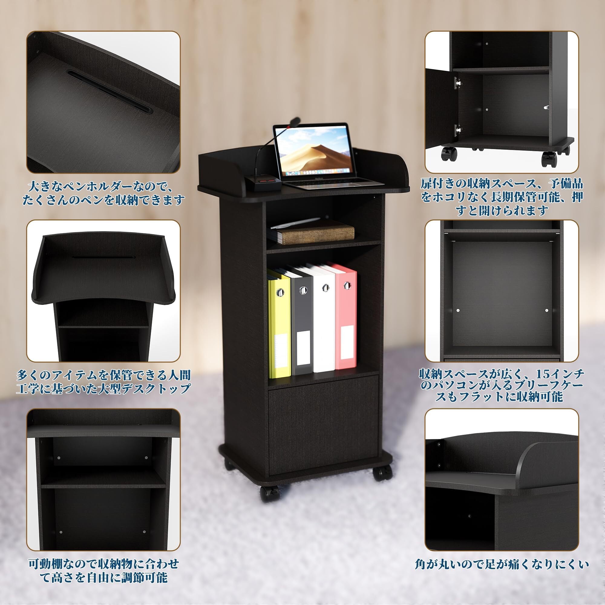 【特価商品】Tcatec 演説台 講演台 教卓 司会台 表彰台 司会者台 スピーチ台 ビジネス 収納棚付き オフィス 家具 ブラック演台 表彰台 演説台 キャスター付き スタンディングデスク 引き出し付き 頑丈な商業表彰台 移動便利 セレモニーデスク 司会者台 表彰テーブル ホームオフィス レクチャーホール 会議 バルコニー 書斎用 (ブラック) | SmartLiving+