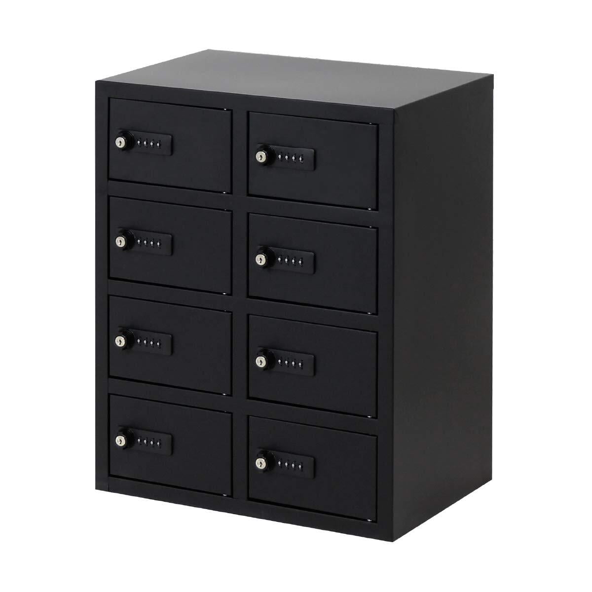 LOOKIT 貴重品ロッカー 2列4段 8人用 ダイヤル錠 金庫 スチール ブラック NSAFE-24