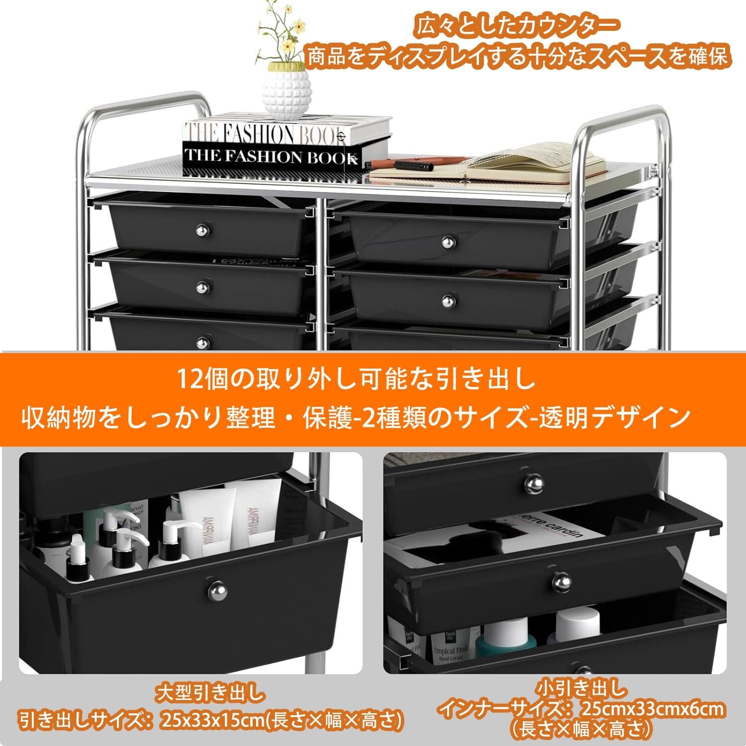 【分類して保存できる】 ローリングカートは12個の引き出しが付いており、様々なカテゴリーのものを収納するのに十分なスペースを提供します。整理整頓すれば、必要なものがすぐに見つかります。スムーズなスライドで、引き出しの開閉も簡単です。