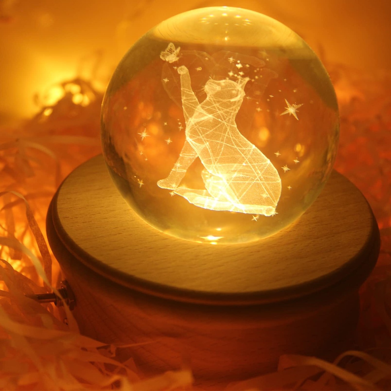 【癒しグッズ 猫オルゴール】幻想的なクリスタルボールと高級感のある木製土台で、上品なインテリアにもなるアイテムです。透明なクリスタルボールの中に3Dで表現された猫様と蝶が美しいオルゴールで、デスクに置いてふと眺めるも良し、部屋を暗くして灯りをつけると、天井にお花のような綺麗な模様が浮かび上がり、素朴なオルゴールの音色と共に回るのでとても綺麗で、癒されます。美しいギフボックスを包装して、子供、彼女、友達、家族など大切な人への誕生日・結婚記念日・クリスマス・卒業祝い・結婚祝いなどのシーンのギフトに大活躍です。
