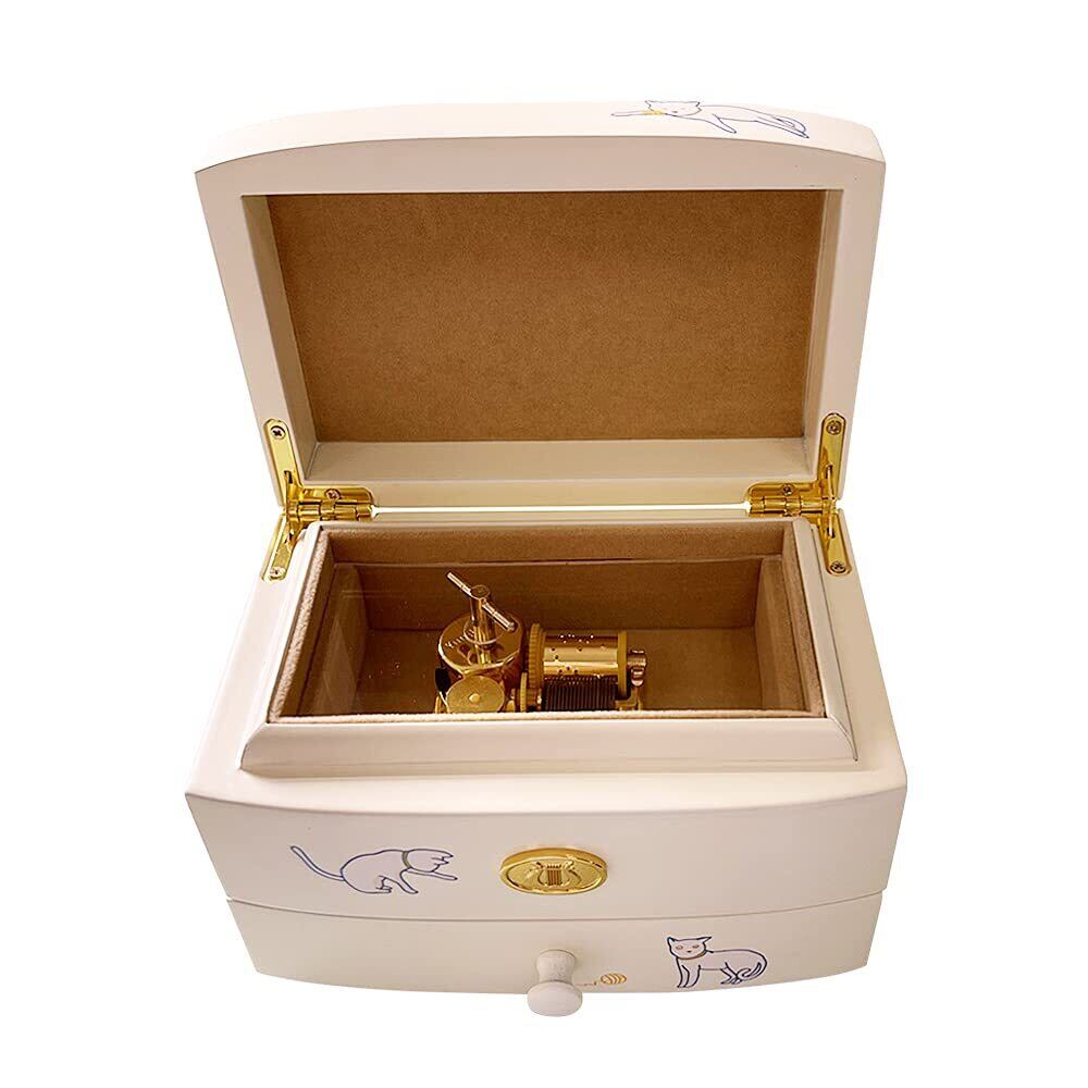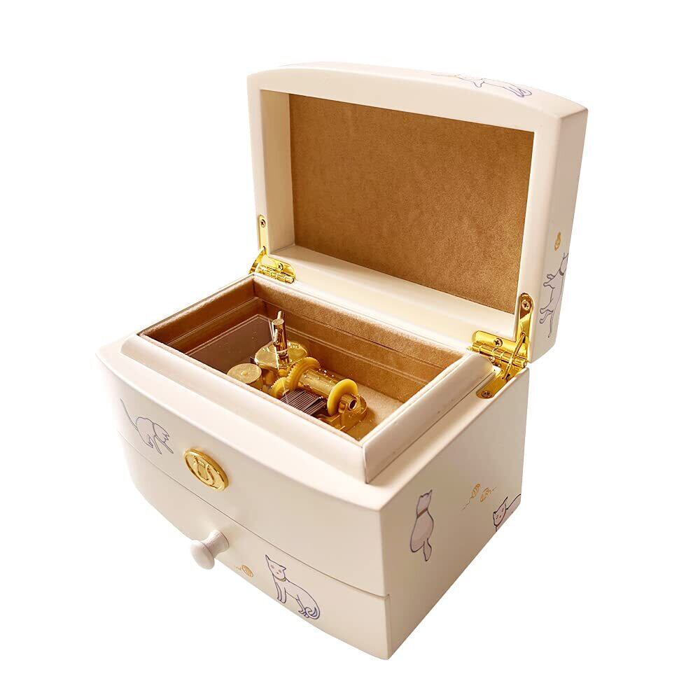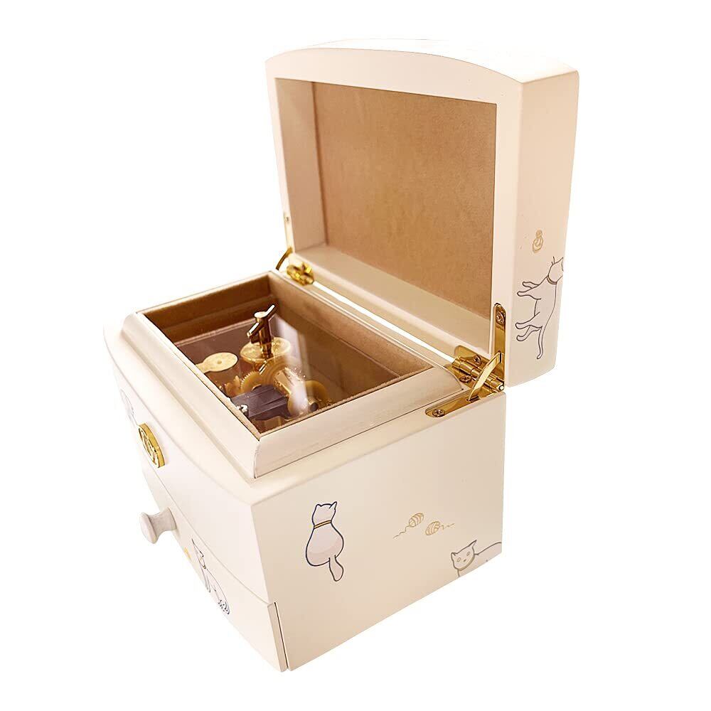 (hej!e)猫ポーズ柄オルゴール ジュエリーボックス ミュージックジュエリーボックス 小物入れ引き出し付き 木製 宝石箱 猫モチーフ 女性 誕生日プレゼント クリスマス オルゴールプレゼント