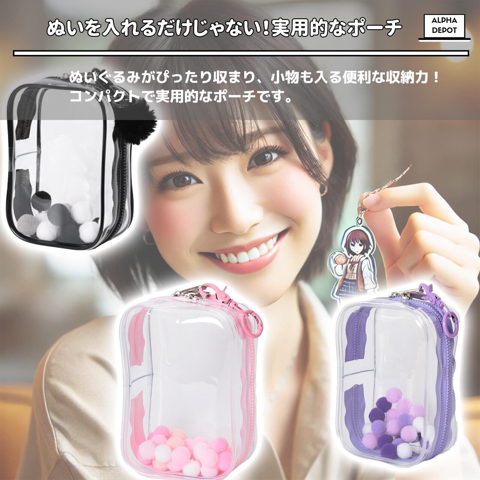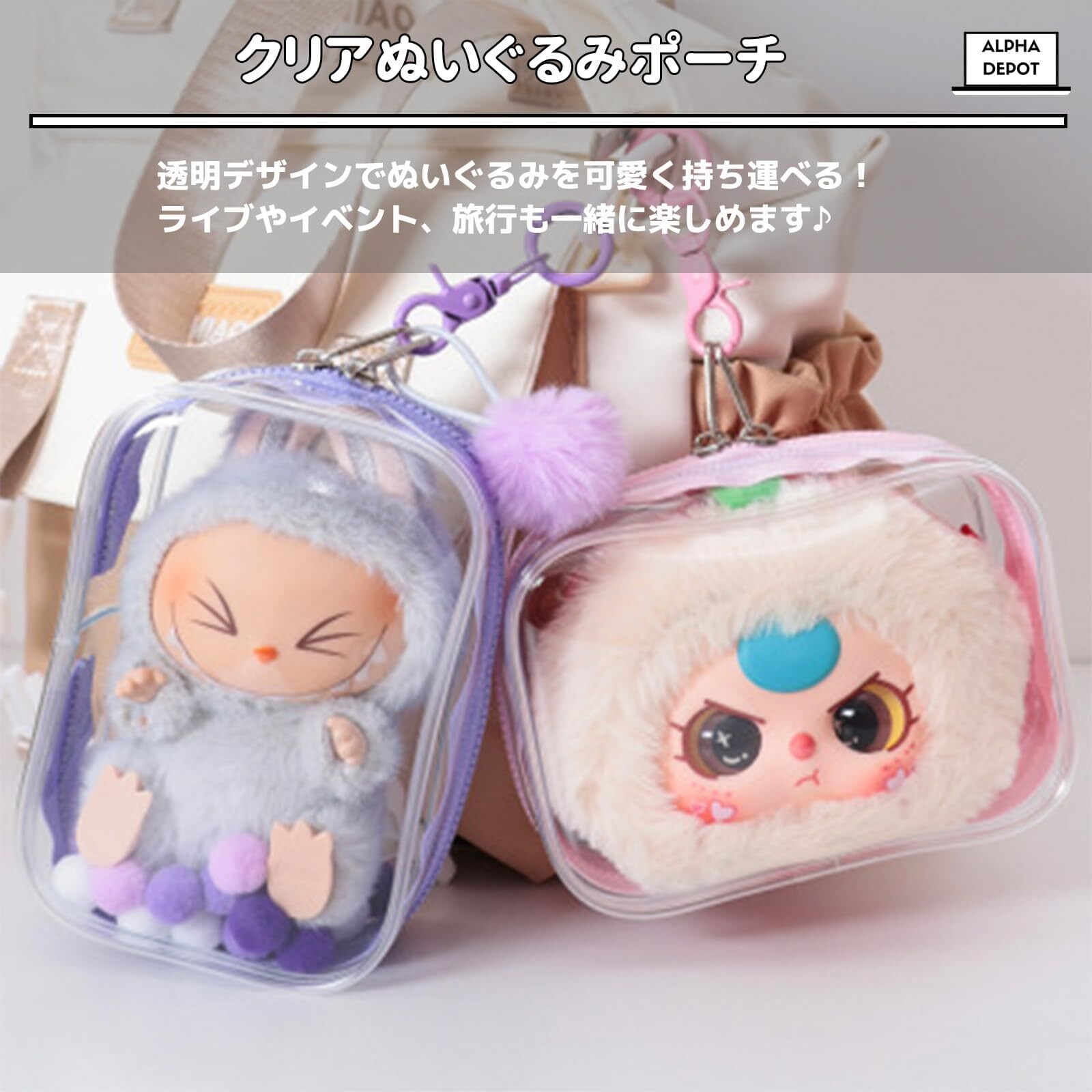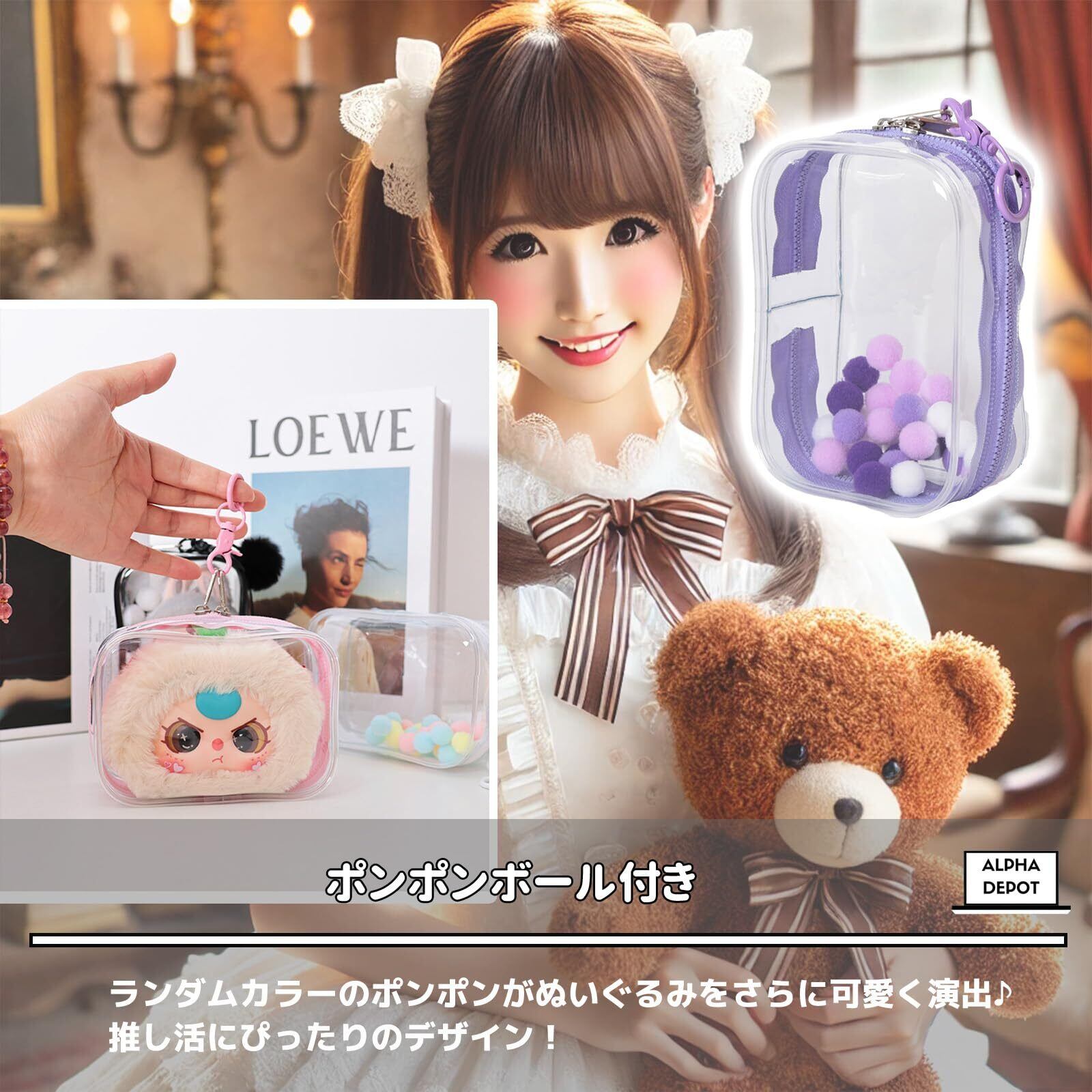 [Alpha Depot] ぬいぐるみポーチ ぬいポーチ 痛ポーチ 痛バッグ 推し活 透明 クリアポーチ クリアバッグ 見せバッグ 人形入れ ぬいば ポンポンボール付き