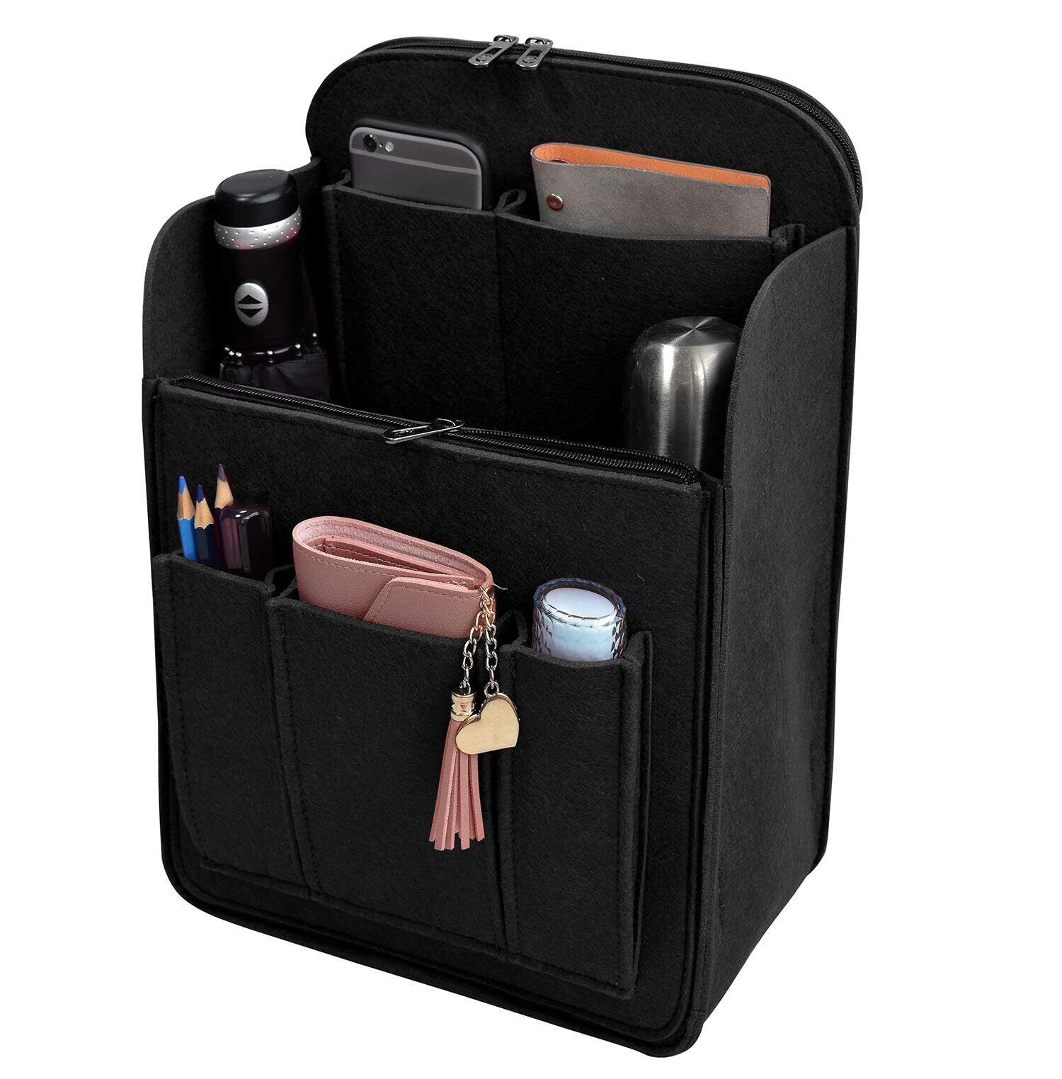 【リュック上部のスペース】大きめリュックインナーバッグでよく存在する「たっぷり入れると自立されない」との問題を対応するため、1層式のフェルトを機能性のあるファスナーポケットに変身。書類やノートパソコンをキレーに収まれるし、バックパック上部のスペースも最大限に活用させられます。