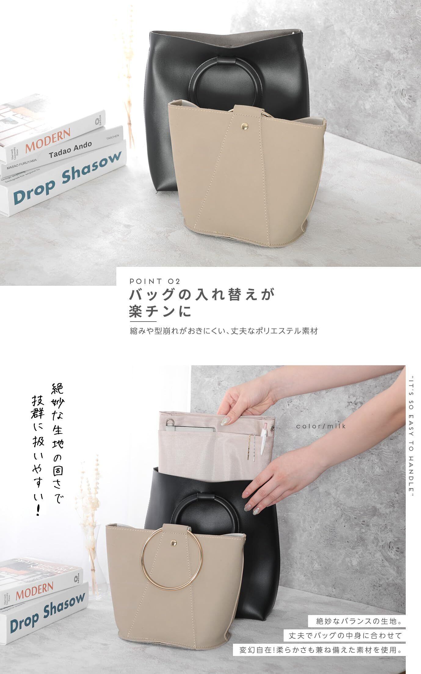 ■【機能的なデザインが魅力!】「バッグインバッグ 小さめ インナーバッグ 縦型」は、シンプルかつ実用的なデザインが特徴です。バッグの中を整理整頓することで、毎日の通勤やお出かけに便利にご利用いただけます!✨。