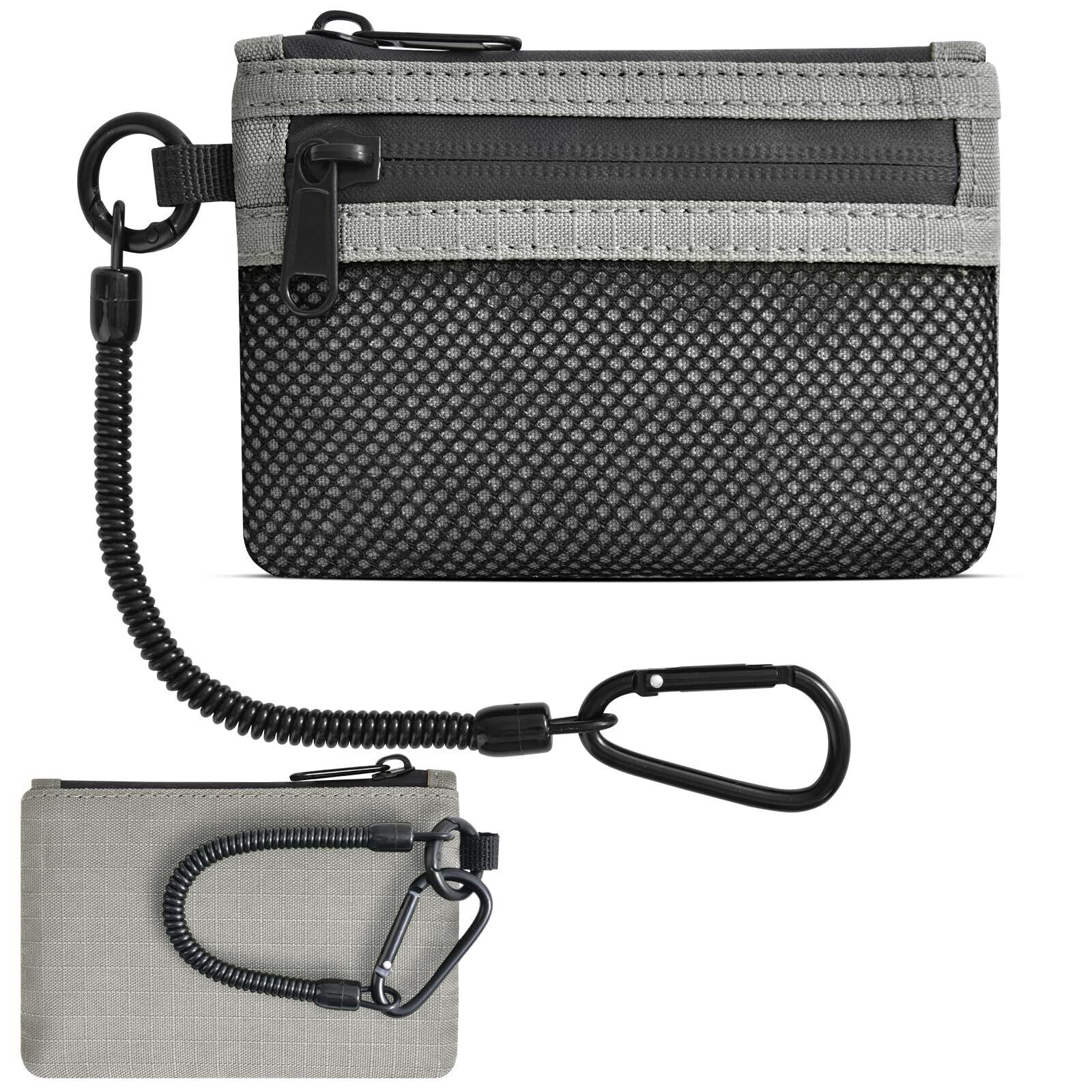 【数量限定】[UriCase] メンズ・レディース男女兼用 薄型防犯パスケース コイン・カード入れ付き ミニ 財布 スキミング防止 トラベルウォレット キーチェーン付き 海外旅行・アウトドア用 定期入れ 伸びる 落下防止(グレー) | SmartLiving+
