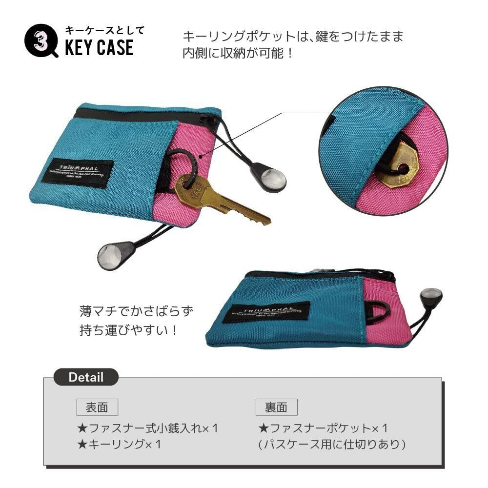 TRIUMPHAL メンズ レディース コイン キー カード ケース ナイロン パープル×ライトグリーン rskc-004h