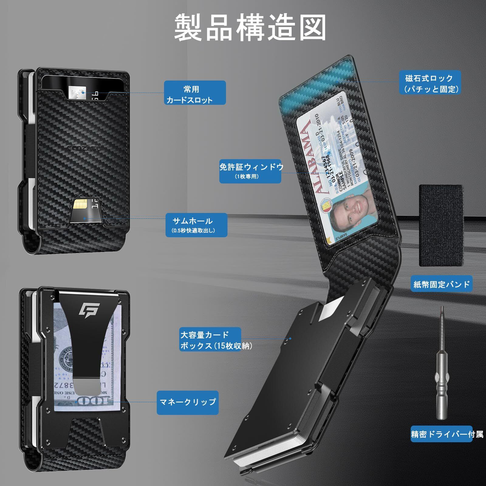 [ECOZATU] メンズ財布 マネークリップ付き 超薄型 フロントポケット対応 15枚収納 磁気フリップ式 金属製クレジットカードケース 男性へのギフトに最適