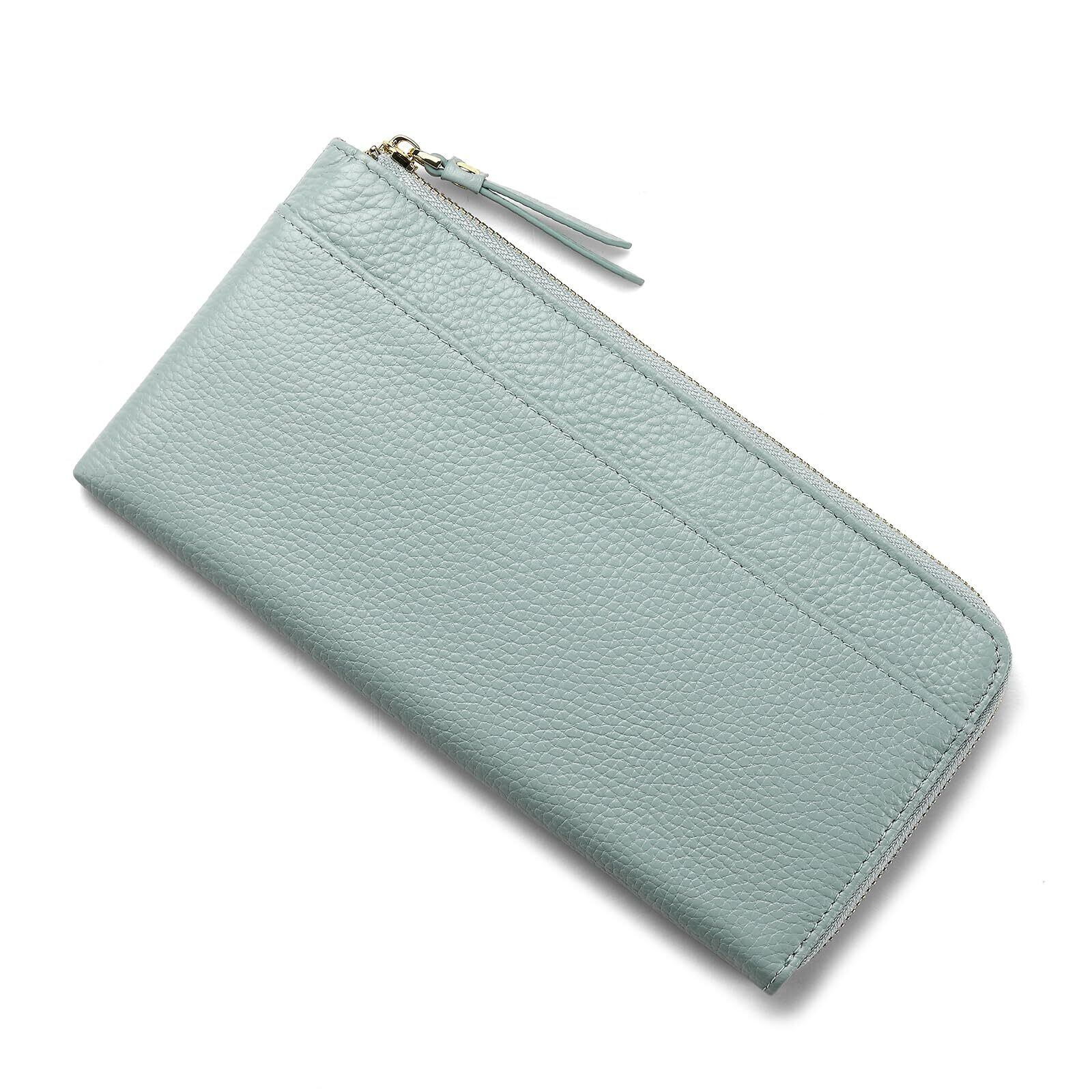 [JEANE.LIDYA] L字ファスナー レディース 長財布 本革 コンパクト 小さい 軽い カード14枚収納 小銭ポケット付き シンプル ボックス型 上品 大人 女性用 ギフト プレゼント 対応 (アイスブルー)