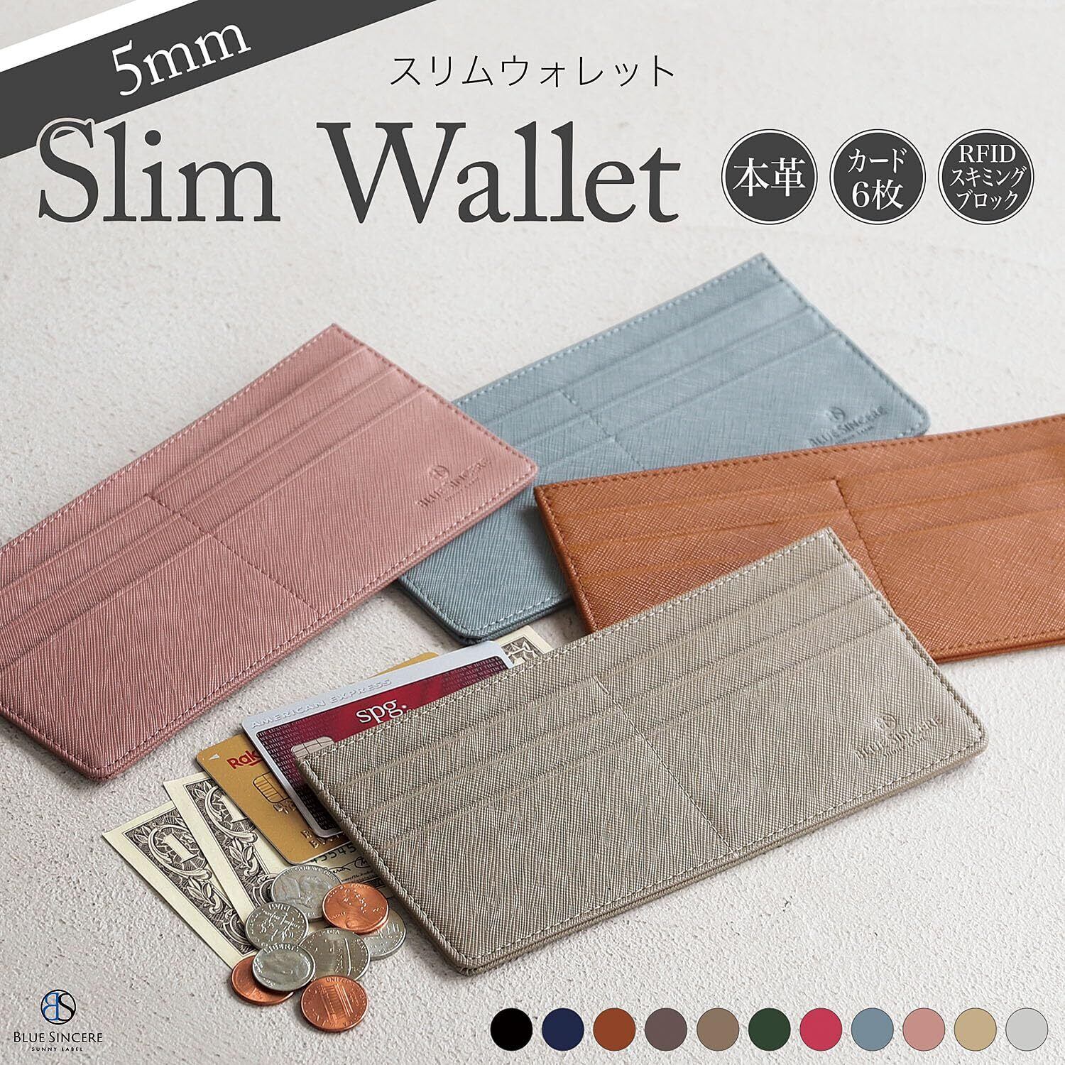 【人気商品】[BLUE SINCERE] 超薄 長財布 本革 RFID カード6枚 スキミング防止 レディース YKKファスナー 薄型 財布 お札入れ 小銭入れ付き 収納 小型 ミニ ウォレット フラグメントケース / SW2 (ロイヤルブラック) | SmartLiving+