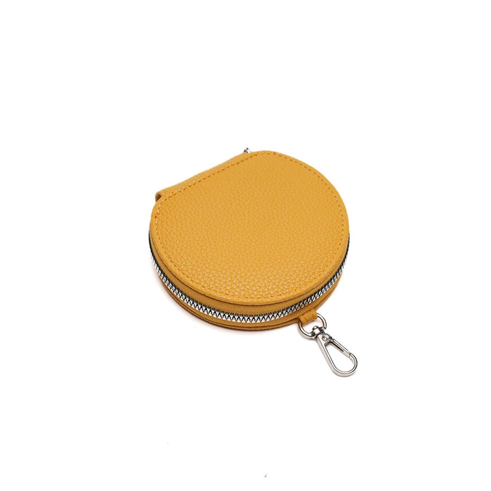 【在庫処分】[TOEDNNQI] 小銭入れ レディース コインケース 丸型 コンパクト 丸いポーチ 小さい カラビナ付き 可愛い ミニ マルチ ミニポーチ 小物入れ バッグアクセサリー キーケース 誕生日プレゼント (イェロー)