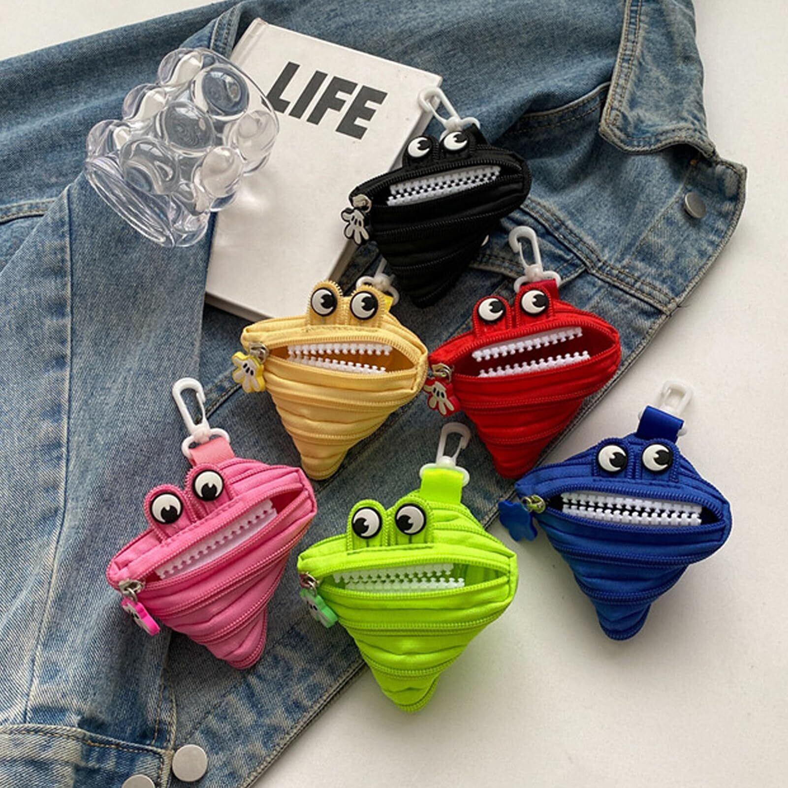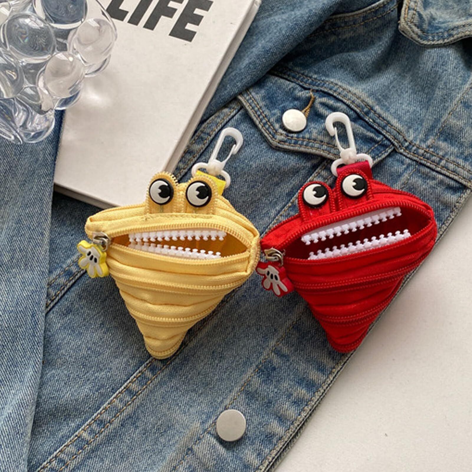 小銭入れ モンスター ジッパー 小物入れ 可愛い コインケース 収納 ポーチ ぬいぐるみ型 アクセサリー リュック キーホルダー (①レッド)