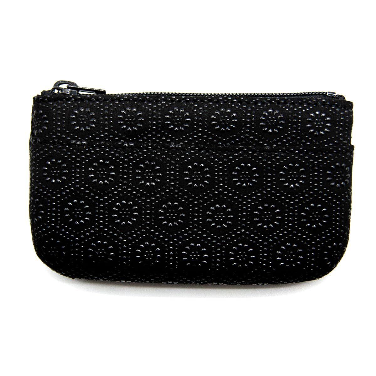 【数量限定】[印傳屋] 印伝 小銭入 コンパクト 鹿革 漆 工芸品 No.1002 ([01-003] 黒地-黒漆 亀甲)