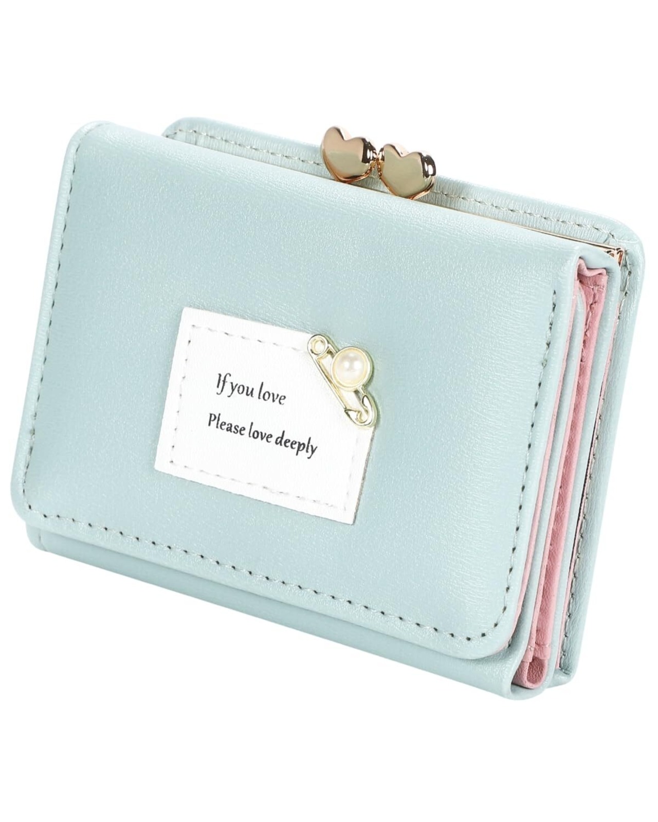[MARIYU] ミニ財布 レディース 三つ折り がまぐち 小銭入れ 女の子 ウォレット (ライトグリーン)