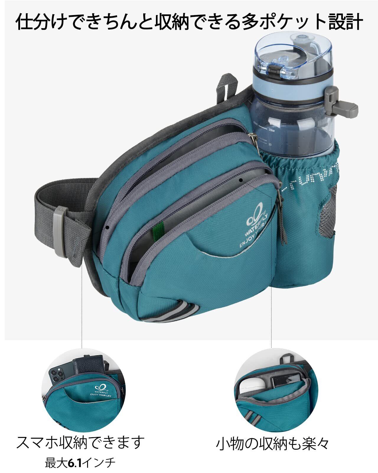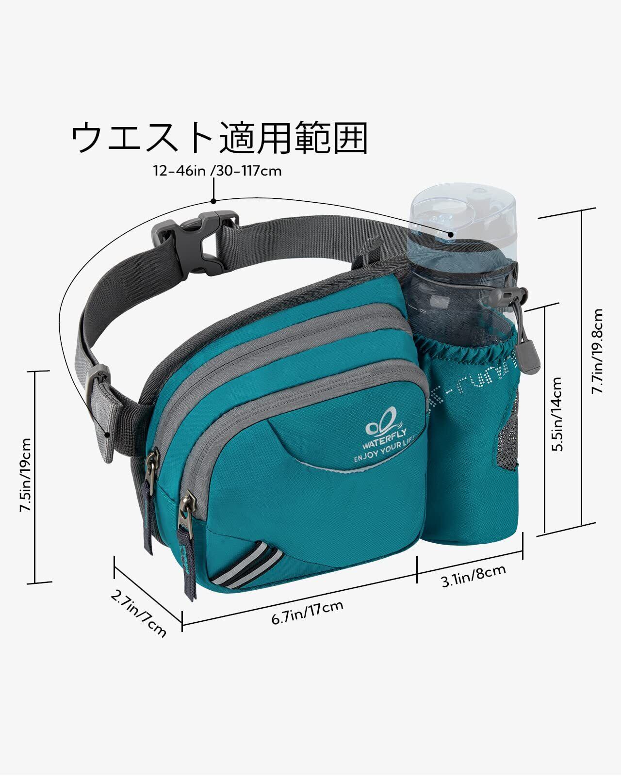【新着商品】WATERFLY(ウォーターフライ) ウエストバッグ ウェストポーチ アウトドア 水筒ポーチ付き 男女兼用 ランニング ウォーキング ジョギング 登山 散歩 軽量 通気 メンズ レディース (青緑)