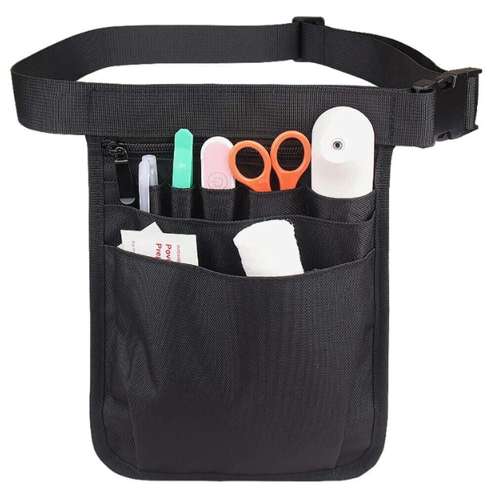 ナースウエストポーチ、エプロンバッグ、ワーキングウエストポーチ、美容師ウエストポーチ、ベルト付き多機能ポケット、収納袋として、ウエスト調節ができ、介護作業に適している(ブラック)