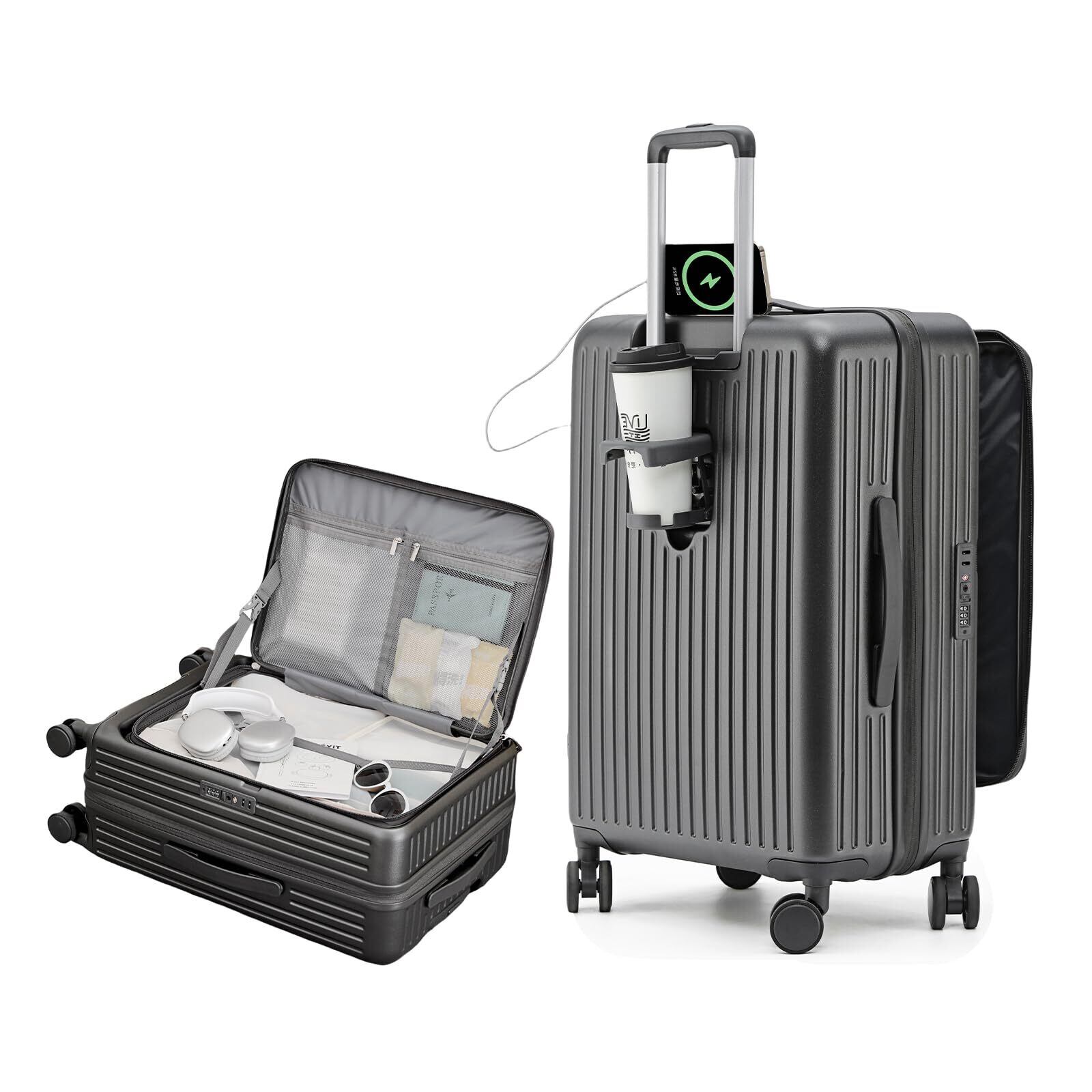 [SupTrip] スーツケース キャリーケース 多機能 片開き 拡張機能付き 機内持ち込み キャリーバッグ フロントオープン USBポート付き カップホルダー付き 隠しフック機能 超軽量 耐衝撃 静音 360度回転 大容量 TSAロック搭載 旅行 ビジネス 出張 (グレー, S(1~3泊/40L/機内持込))
