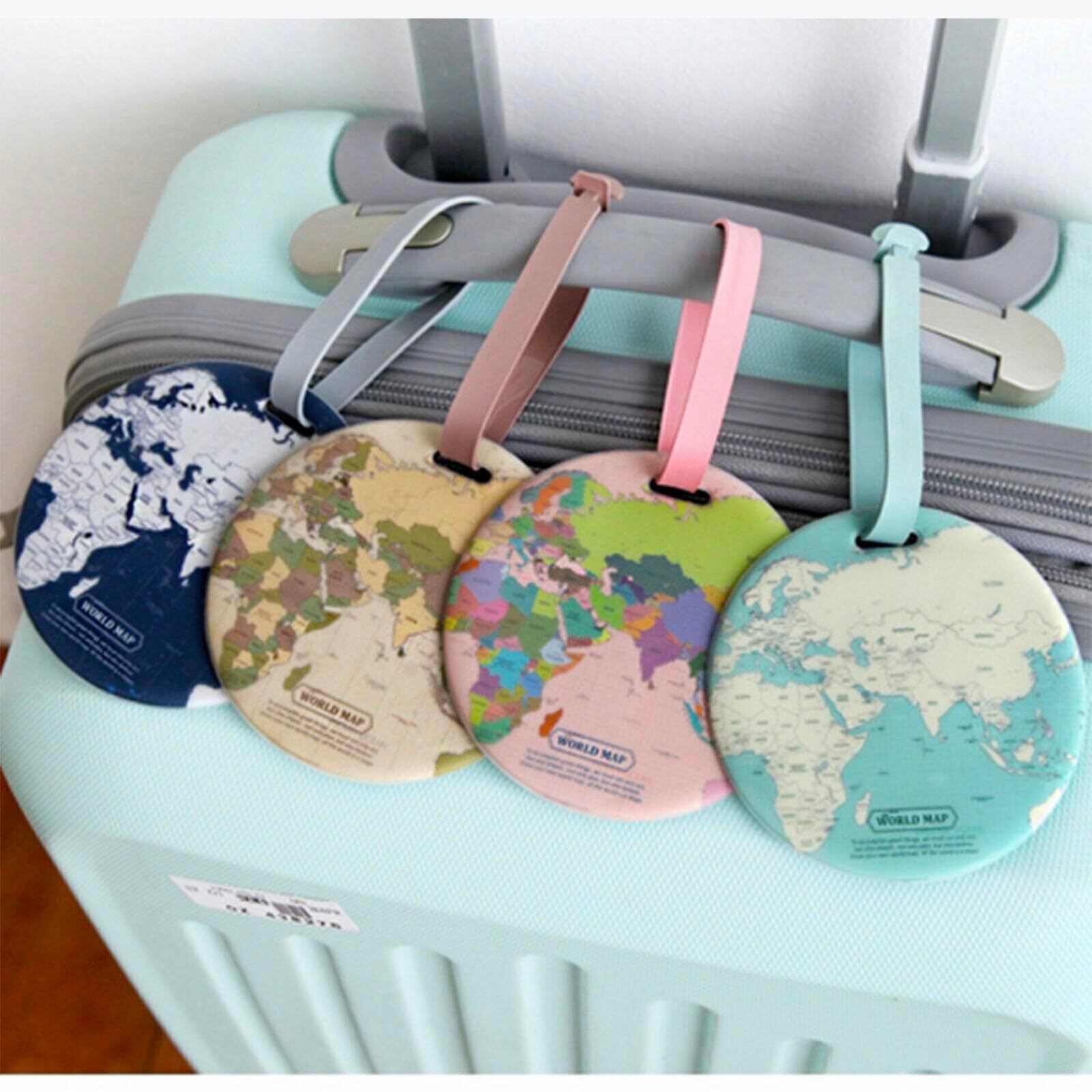 荷物タグ 2/4個セットスーツケース ネームタグ 軽量 防水 バッグ用ネームタグ ラゲージタグ カラフル パターン 名刺入れ 識別子 手荷物 バッグ用 (地図の図案-4pcs)