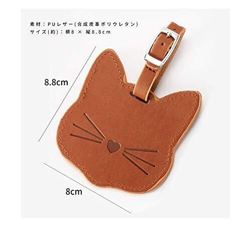 ネコ 猫 ネームタグ ネームプレート PUレザーネームタグ 荷物タグ ラゲージタグ スーツケース ネーム トラベル カメラ スポーツバッグ 入園 幼稚園 入学 ゴルフ (ライトブラウン)