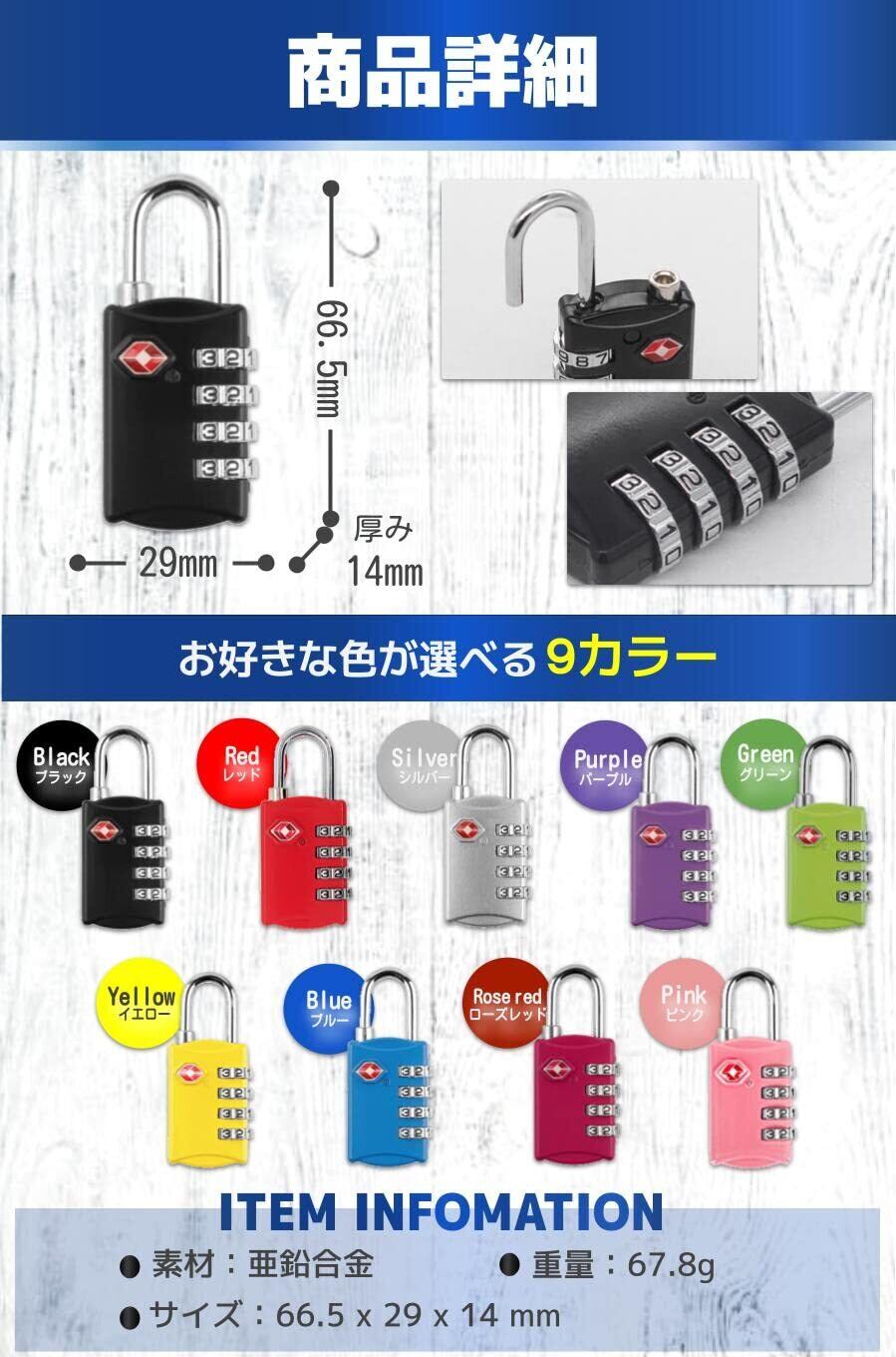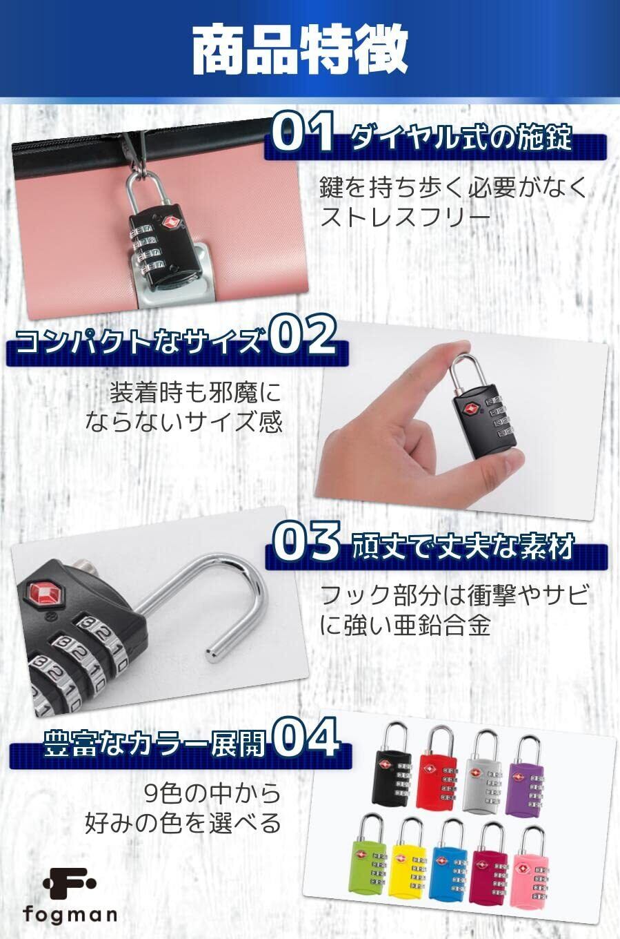 fogman TSAロック 南京錠 4桁 ダイヤル式 スーツケース 防犯 カラフル 選べる9色 (パープル)