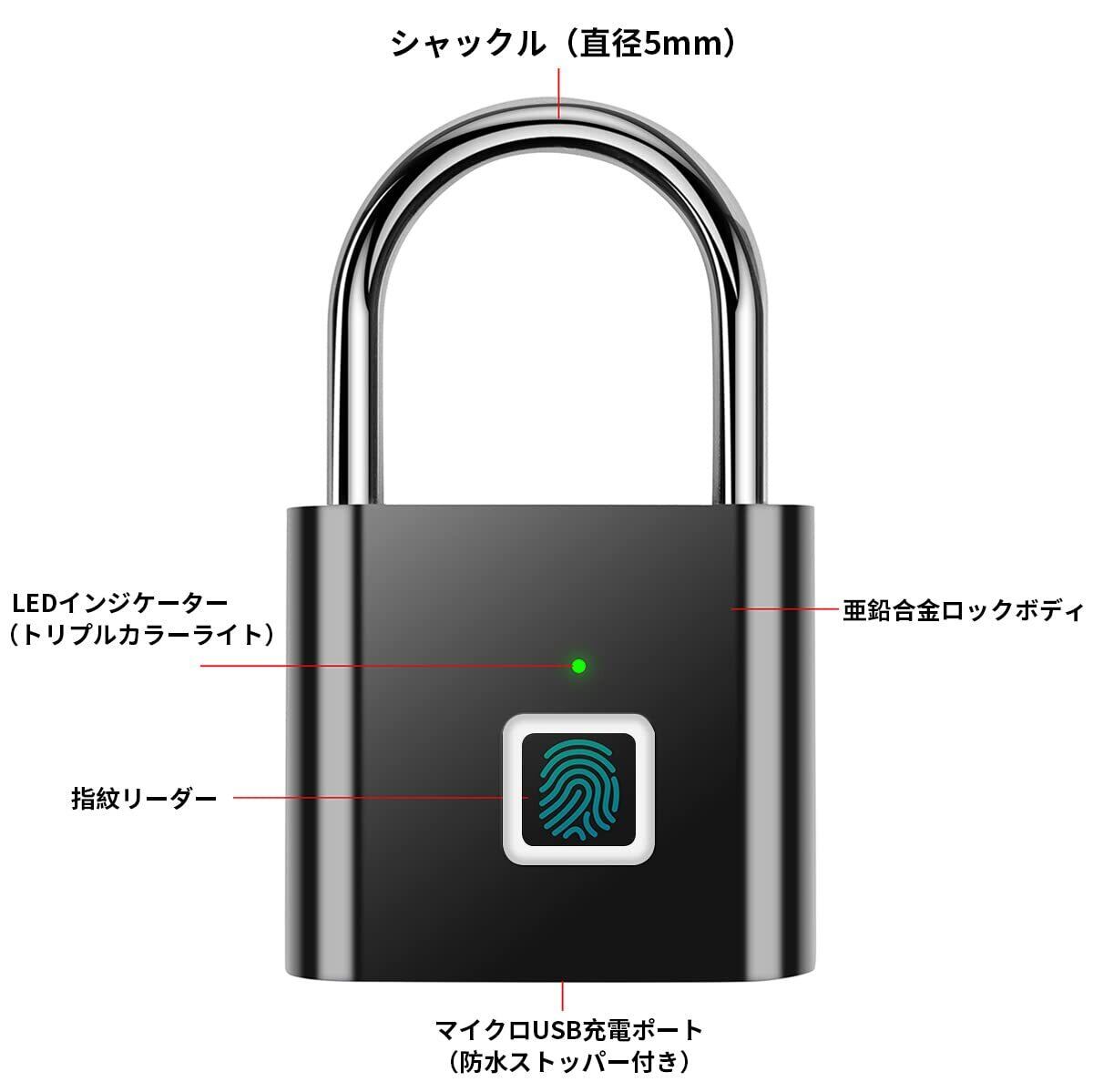 新しいアップグレードバージョン指紋南京錠AICaseスマートロックUSB充電式タッチロックジムスポーツスクール従業員ロッカーフェンススーツケース超軽量自転車ワンキー指紋ロック
