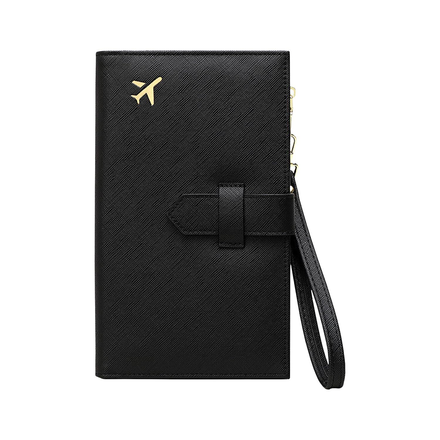 [Arena Leo] パスポートケース スキミング防止 薄型 二つ折り パスポートカバー 軽量 ストラップ付き (ブラック)