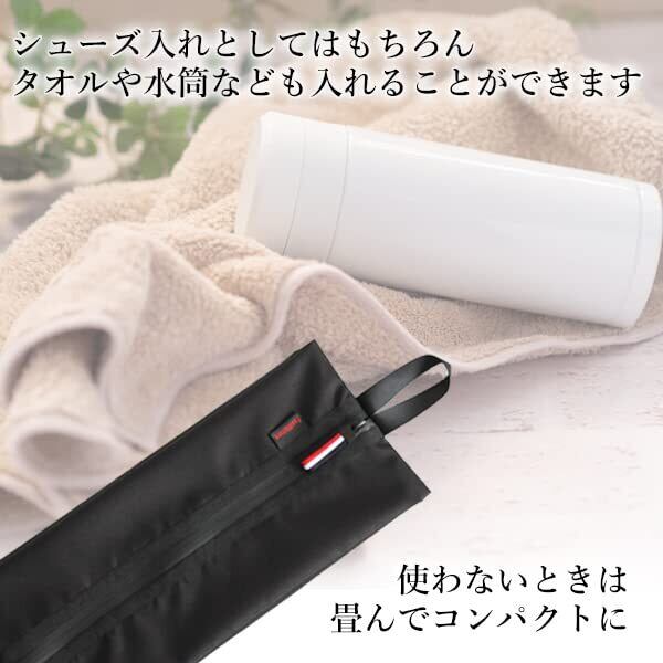 ・防水加工が施されている多機能シューズバッグです。 ・開閉口がファスナーで大きく開くので出し入れが簡単です。 ・持ち運びに便利な取っ手もついています。 ・シューズ入れとしてはもちろんですが、タオルや水筒なども入れることができます。 ・ものを入れていないときは畳むことでコンパクトになりカバンの中に入れることができます。 【商品仕様】 カラー ブラック