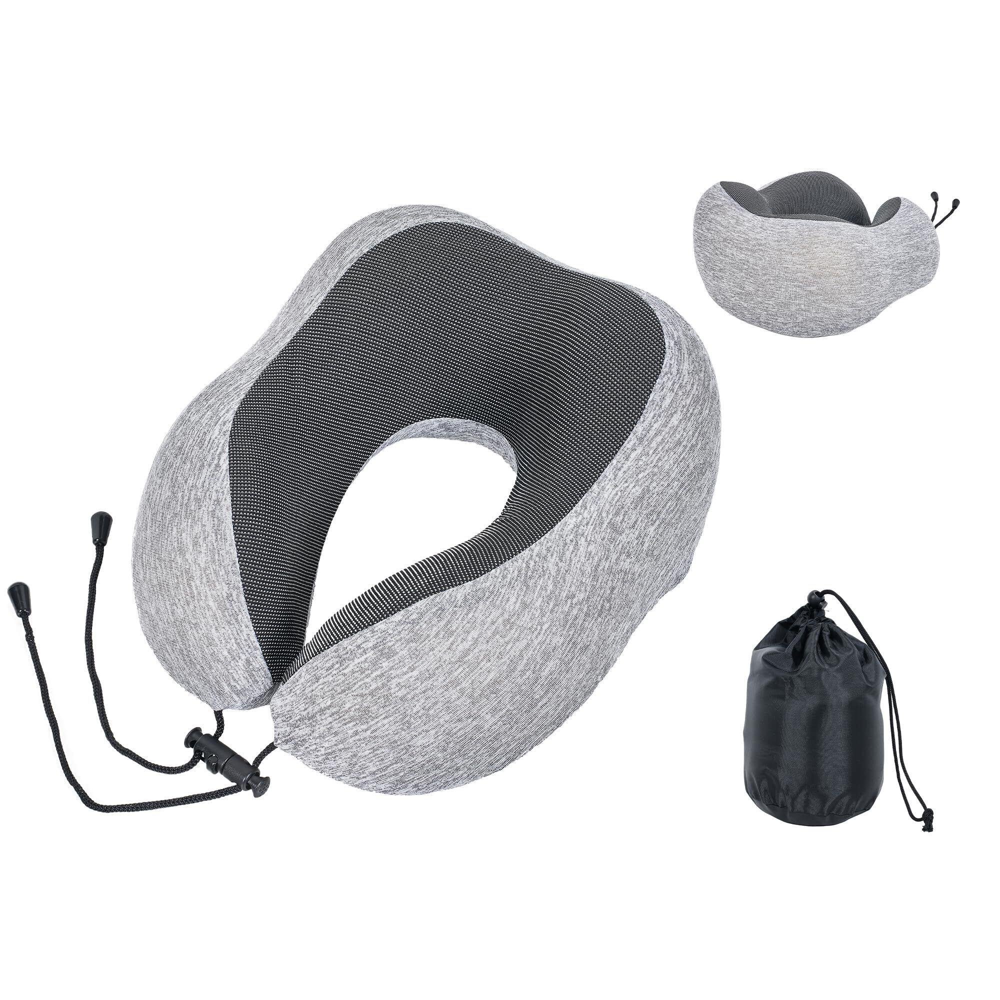VECELO ネックピロー 飛行機 『メモリーフォーム・ 超柔らか』 携帯枕 一体式収納袋 車 首枕 洗濯可能 昼寝枕 トラベルピロー 有線 枕头 U型枕 低反発 コンパクト 快適グッズ グレー
