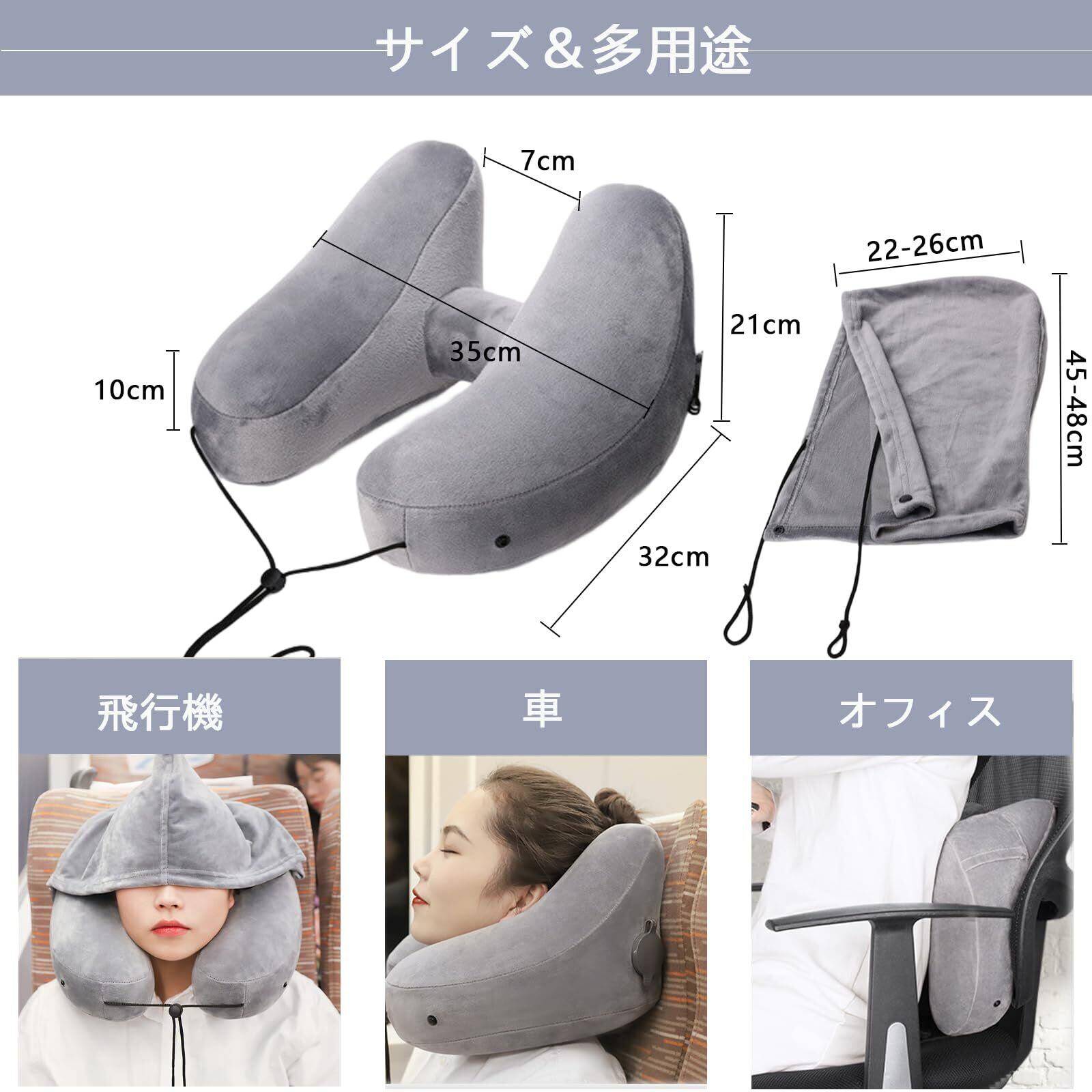 【肌に優しい素材&サイズ】枕カバーは軽くて柔らかく、肌触りの良い生地を採用、通気性と柔らかさを保って快適な睡眠体験を提供します。内の空気バッグは上質のTPUを作られ、ビニールよりも優れ、無毒・無臭の素材です。サイズ:大:35*32*21cm、小さな:20*16.5*5cm。メンズ、レディース、ユニセックス、男女兼用です。