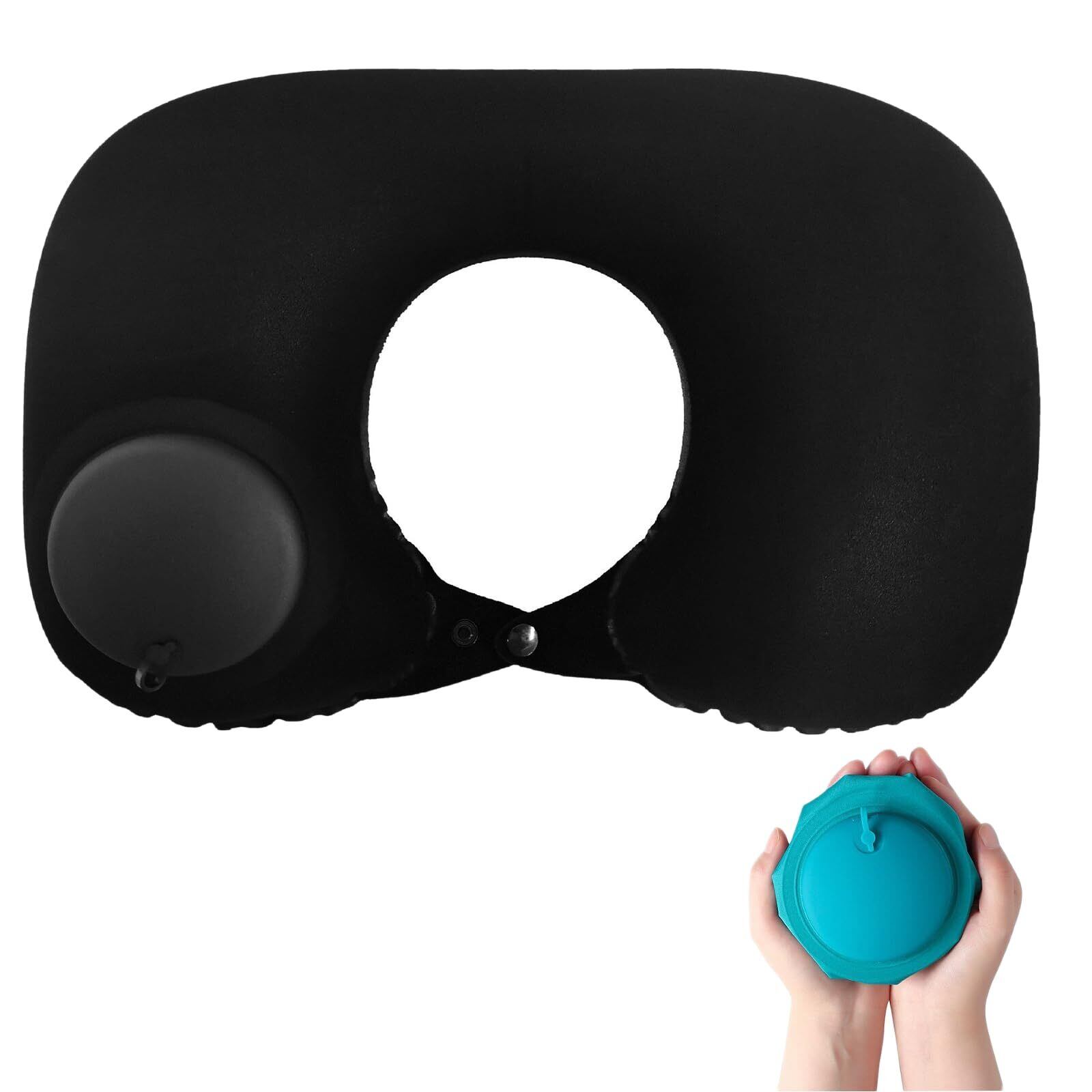 BaraRose ネックピロー 飛行機 キャンプ 枕 押圧式充気 U 型枕 旅行 便利グッズ アウトドア・バス・オフィス用 (ブラック)