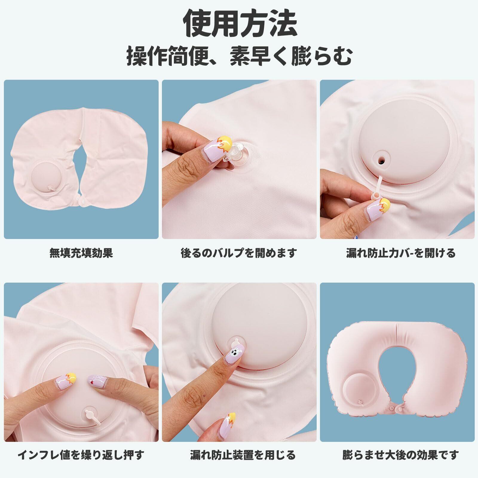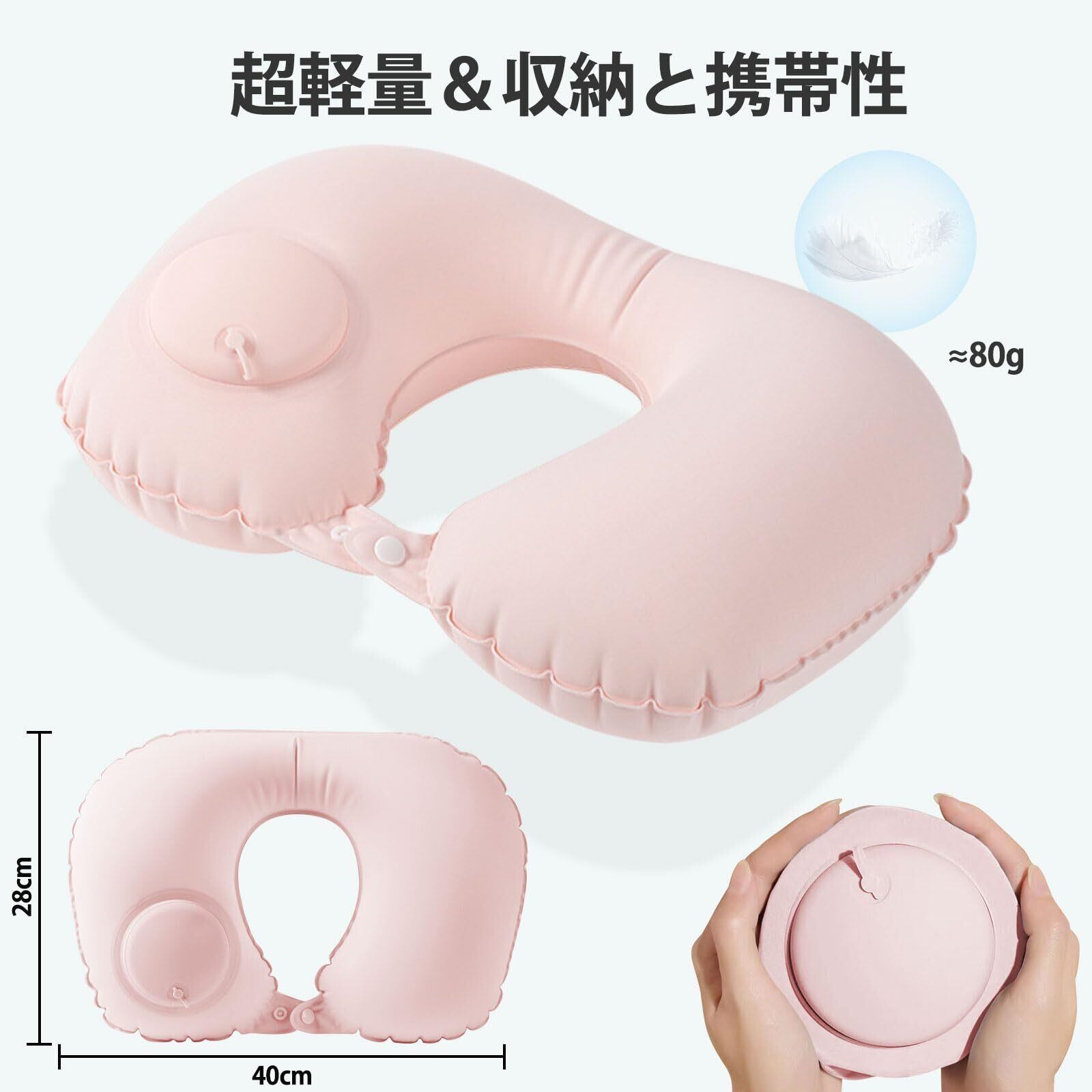 Vialifer ネックピロー コンパクト 飛行機 枕 昼寝枕 オフィス、自宅で休む、海外旅行 便利グッズ エア枕 首枕 (ピンク)