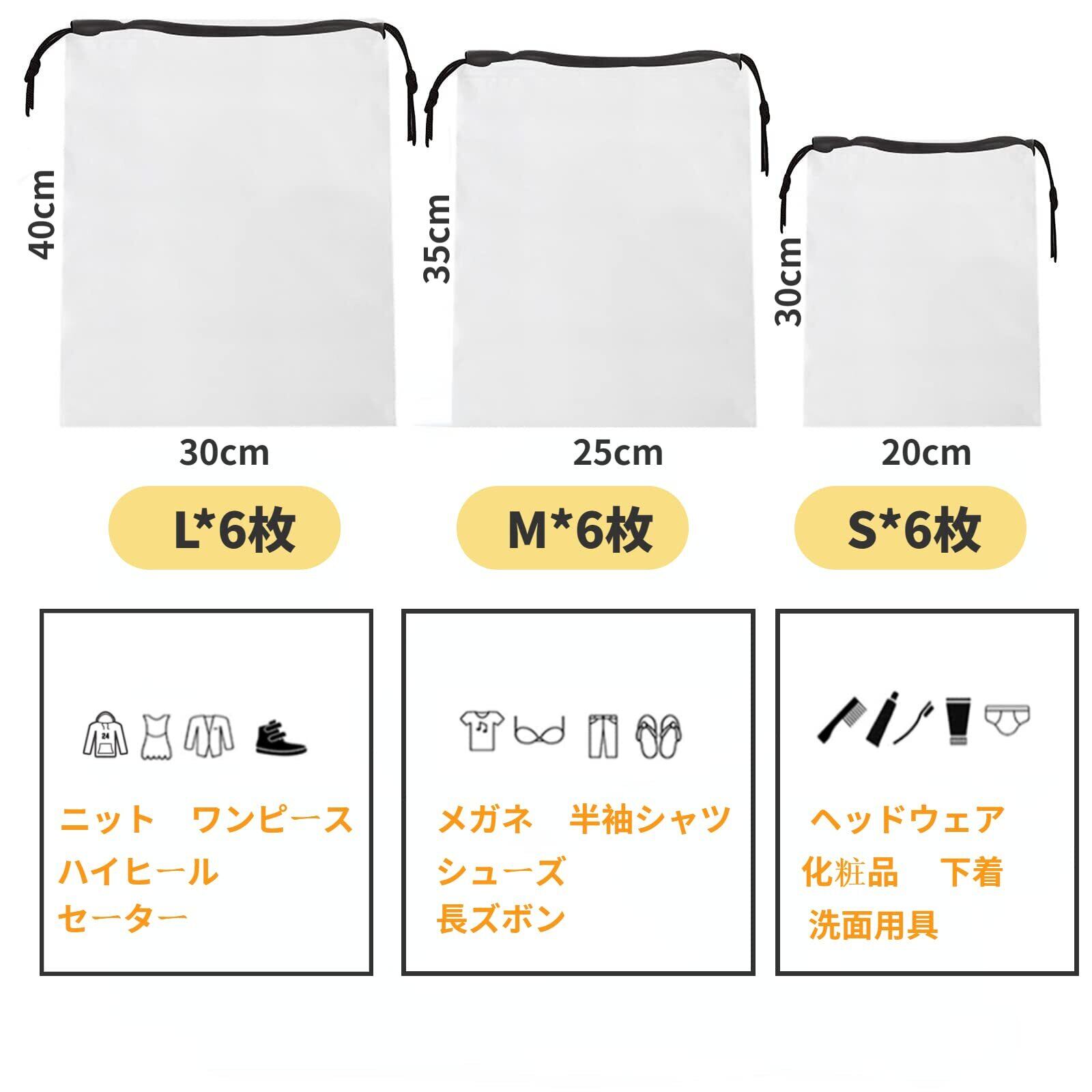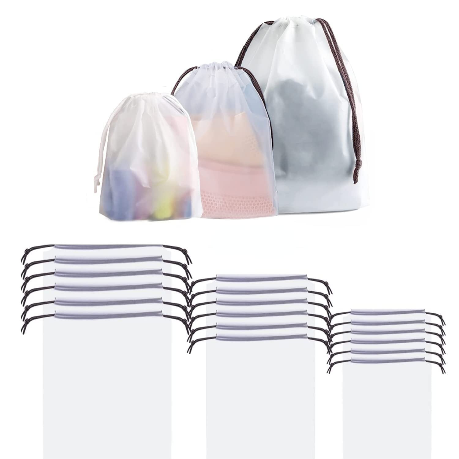 YINKE ビニール 防水収納ポーチセット 巾着袋 引きひも袋 小物入れ 靴袋 旅行用ポーチ (サイズ: 18セット:Lx6枚;Mx6枚;Sx6枚)