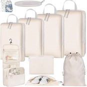 【特価商品】トラベルポーチ 圧縮 セット 旅行用圧縮袋 10点セット 【2025年最新型】 旅行圧縮バッグ パッキングポーチ 可変スペース 圧縮で衣類スペース約60%節約 (ベージュ)