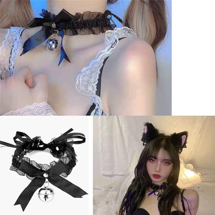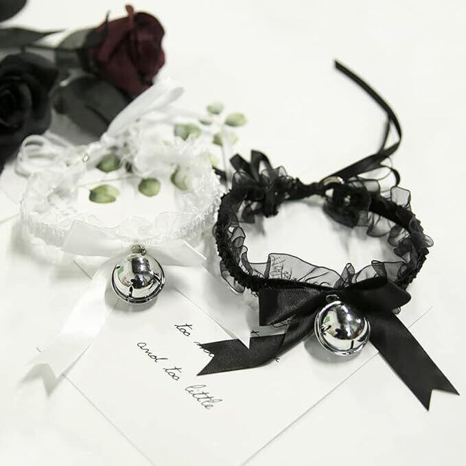 [Rzilmer] 2個セット 首輪 レディース チョーカー レース 男女兼用 コスプレ 鈴 可愛い ゴシック レディースチョーカー 調節可能 首飾り ハートデザイン 蝶結びチョーカー 原宿系 人間用 地雷系 道具