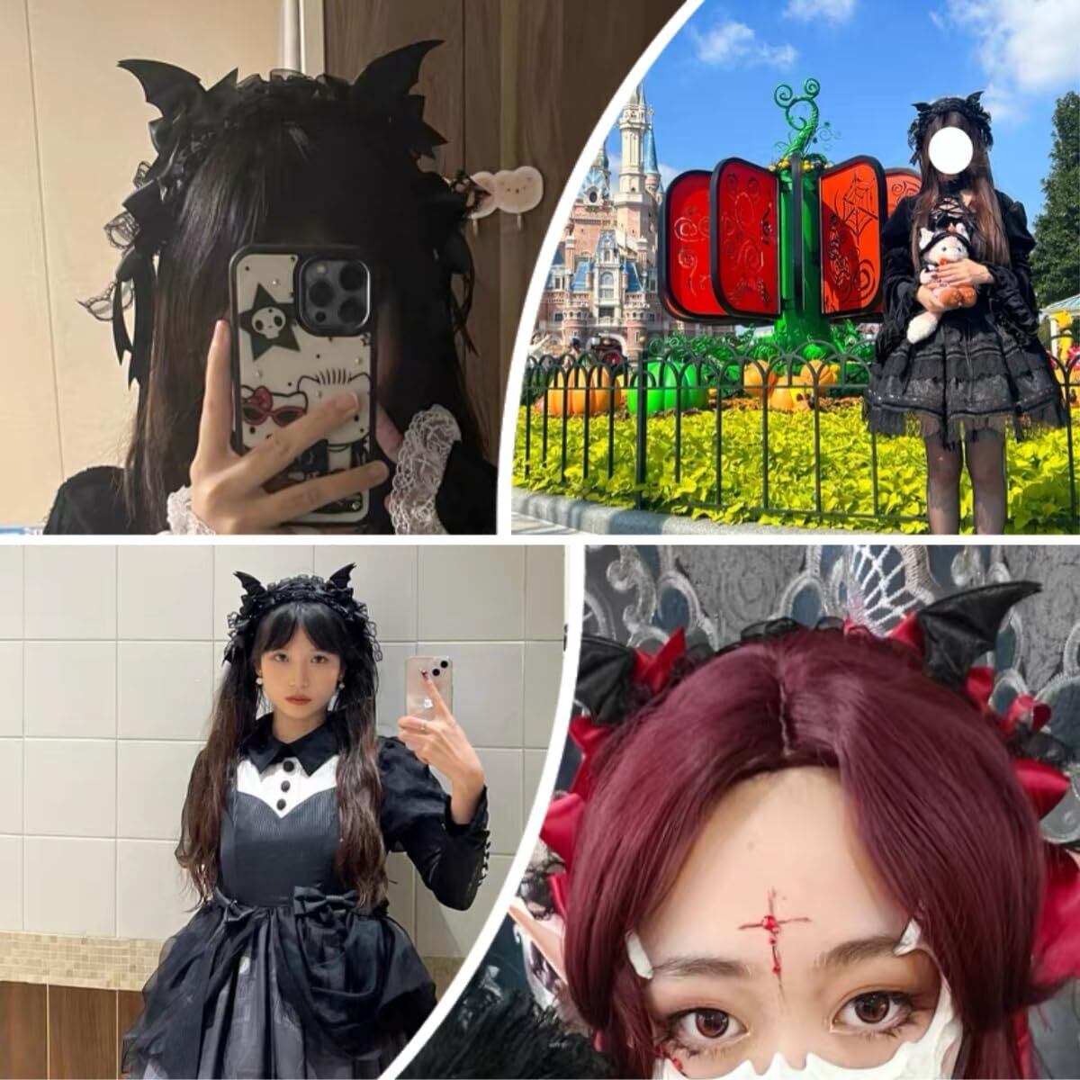 【デザインの独創性】このヘッドドレスは、ゴスロリやゴシックスタイルにぴったりの悪魔の羽と蝶結びの組み合わせが特徴です。細やかなレースの装飾が加わることで、繊細かつ大胆なデザインが完成します。