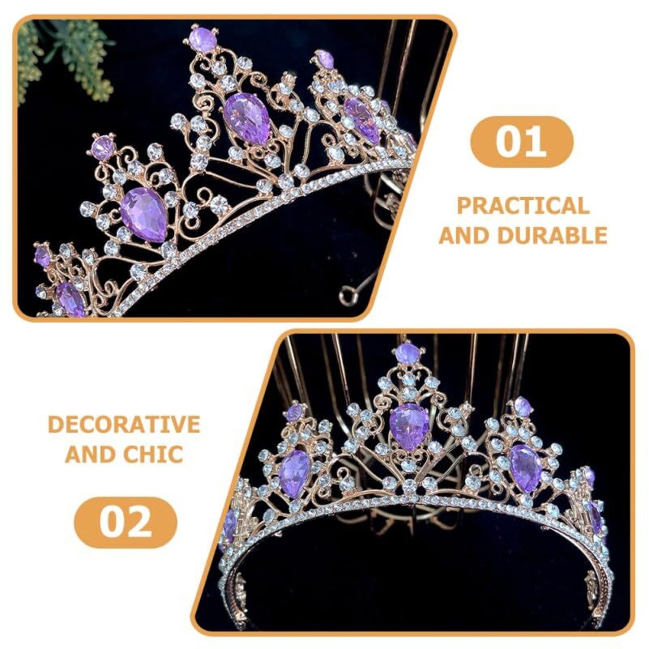 PACKOVEブライダルティアラウェディングラインストーンティアラバロック様式の王冠ラインストーンバースデーティアラ結婚式や誕生日にぴったり