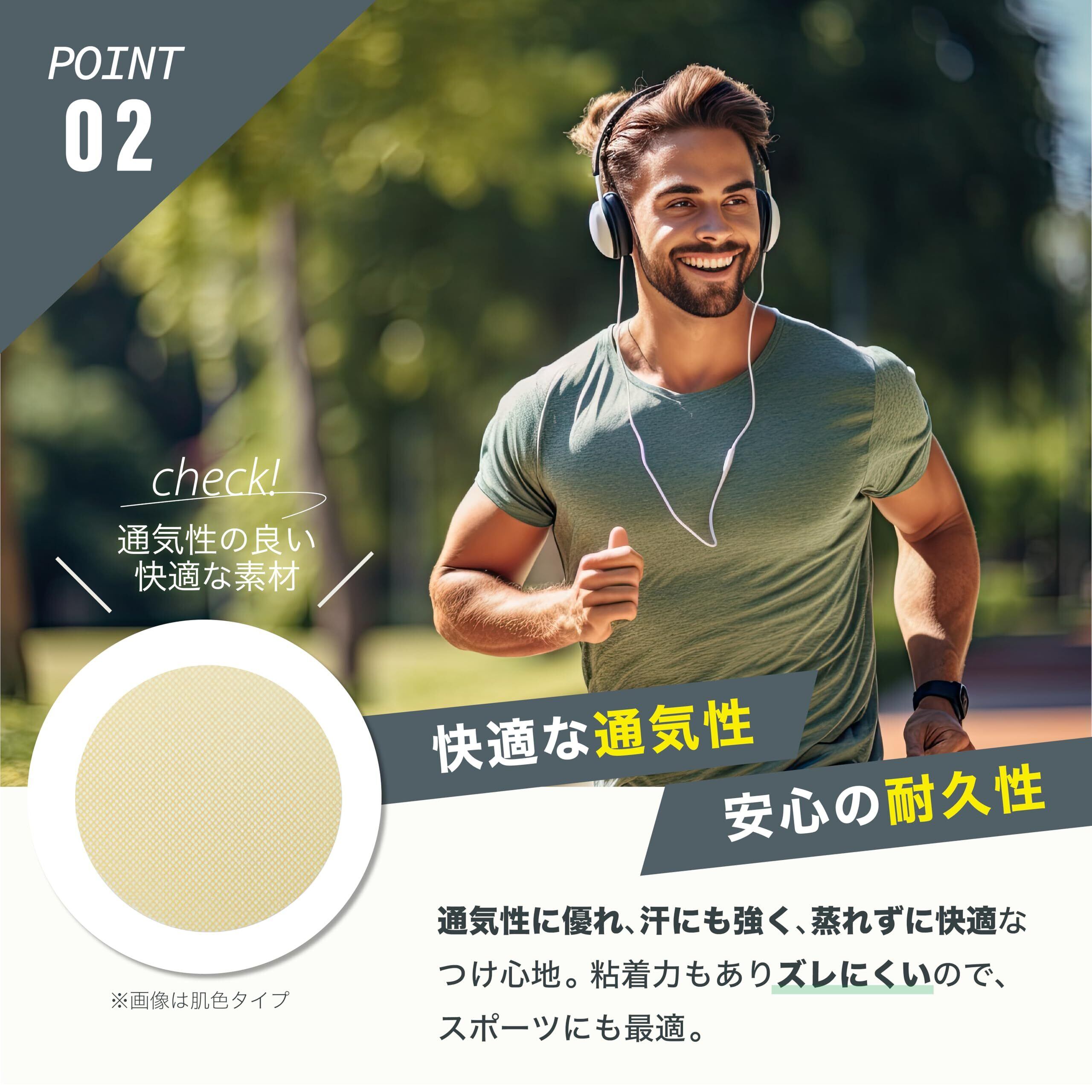【通気性】快適な通気性で汗にも強く蒸れにくい素材を採用。粘着力もあり運動にも最適なニップレス。