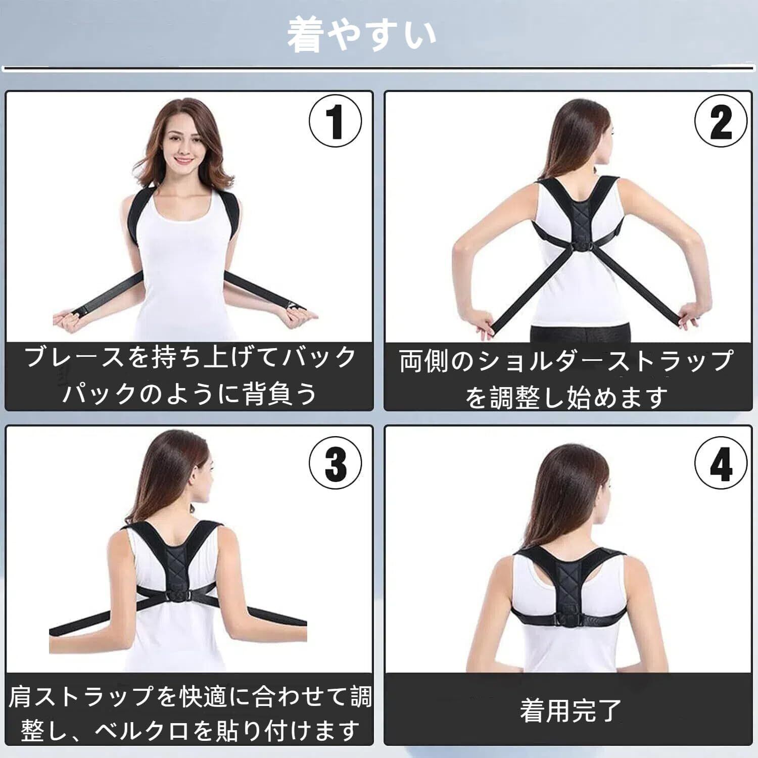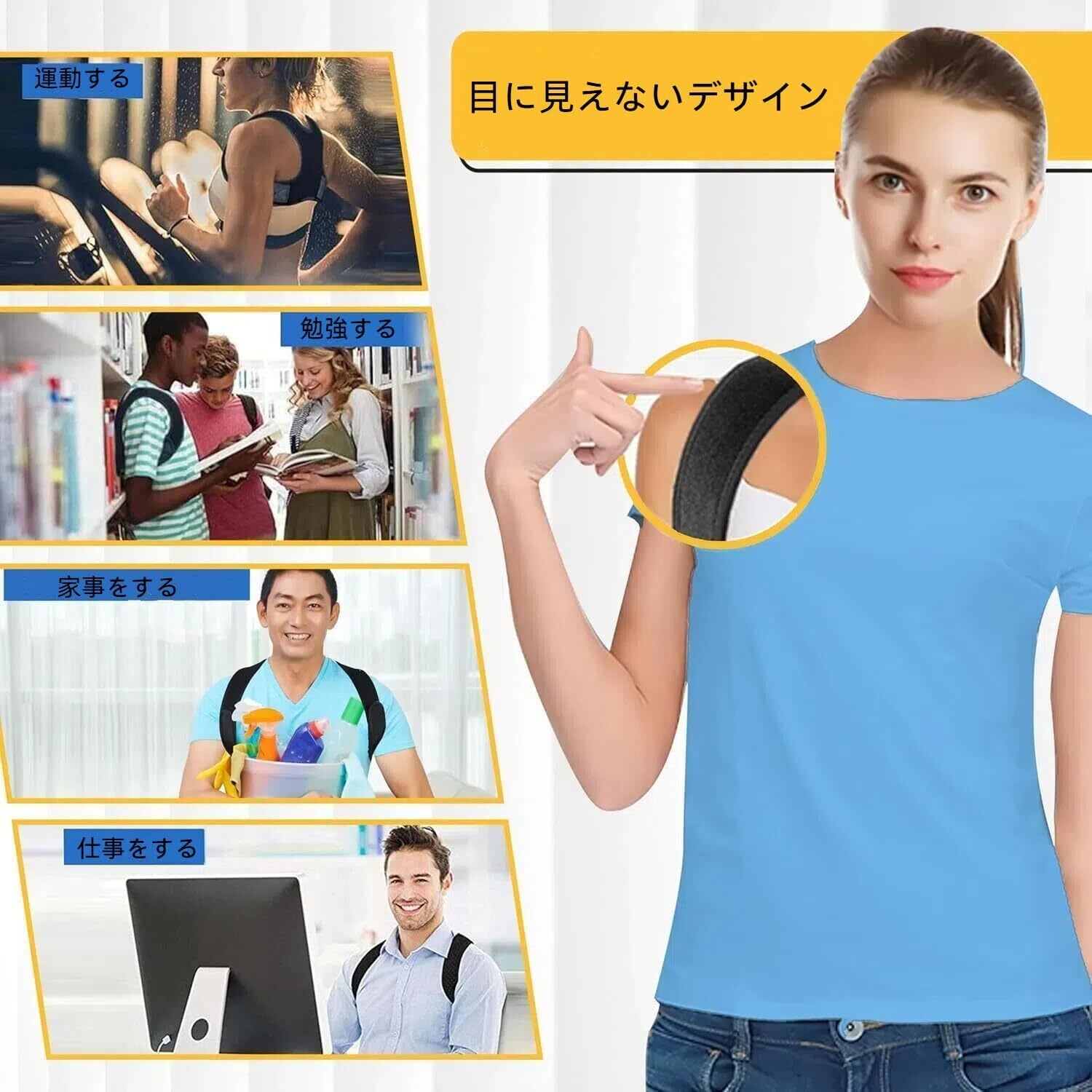 特徴:姿勢矯正、猫背矯正、通気性、男女兼用、調節可能、軽量