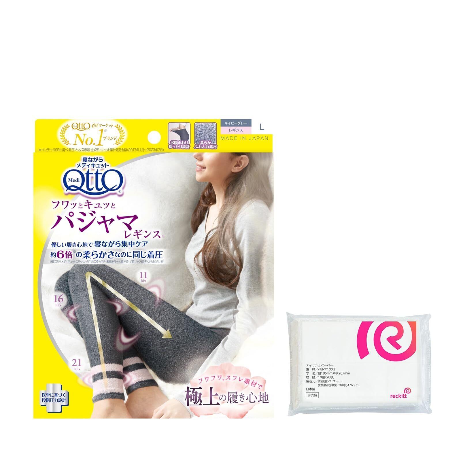 【人気商品】メディキュット 【 限定】着圧 パジャマ レギンス モフっとキュッと パジャマレギンス ルームウェア ネイビーグレー L + おまけ付き
