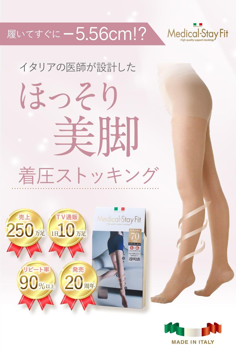 着圧 弾性 ストッキング ほっそり美脚 メディカル ステイフィット 70デニール イタリア製 Medical-Stay Fit 透明感 素肌感 パンスト レディース 美脚 履くだけ