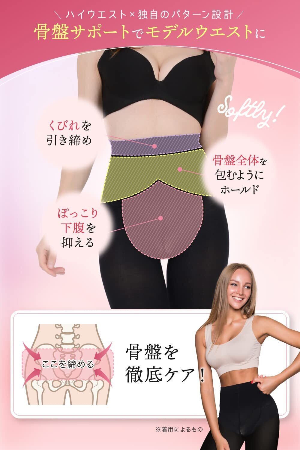 特徴:着圧、ハイウエスト、高ストレッチ、デイリーユース、昼夜兼用
