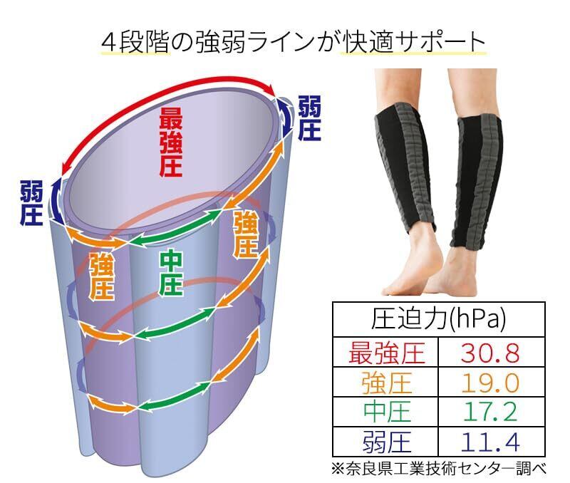 ■【心地よい圧力で血行を促進!】特許技術に基づいた段階着圧設計により、足首からふくらはぎにかけてしっかりと支持力を発揮します。長時間の立ち仕事や運動後に着用することで、疲労感を和らげ、アクティブな生活をサポートします。
