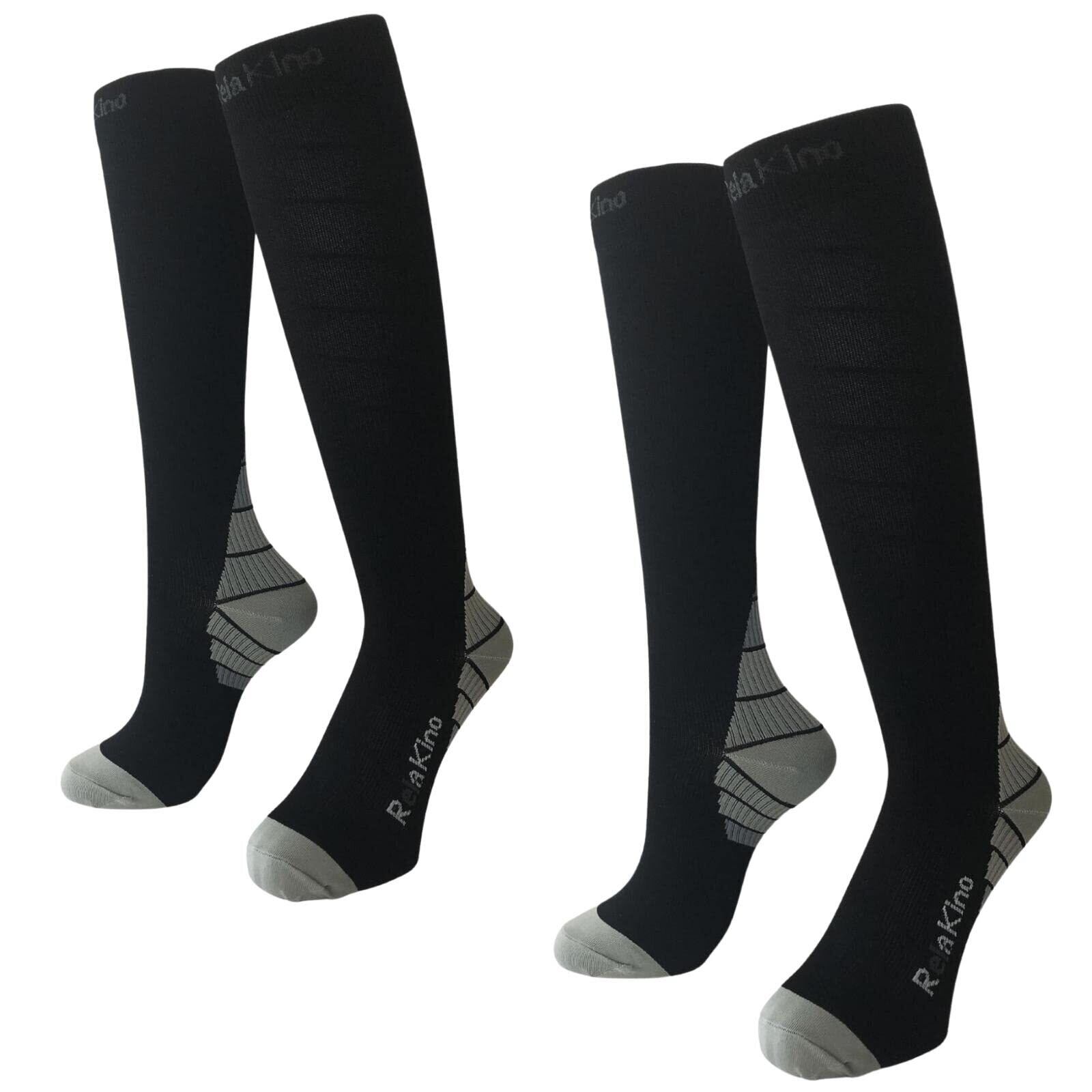 【人気商品】[リラキノ] 着圧ソックス 【サポートに特化した靴下】 着圧 ハイソックス ふくらはぎ用 ゴルフ スポーツ メンズ レディース (L/XL, ブラック2足セット)