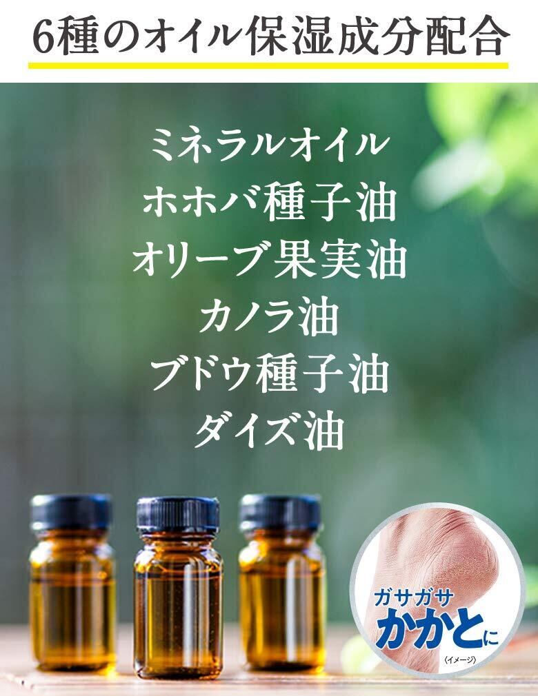 肌の表面をコーティングし、水分を閉じ込め、かかとに潤いを与えます