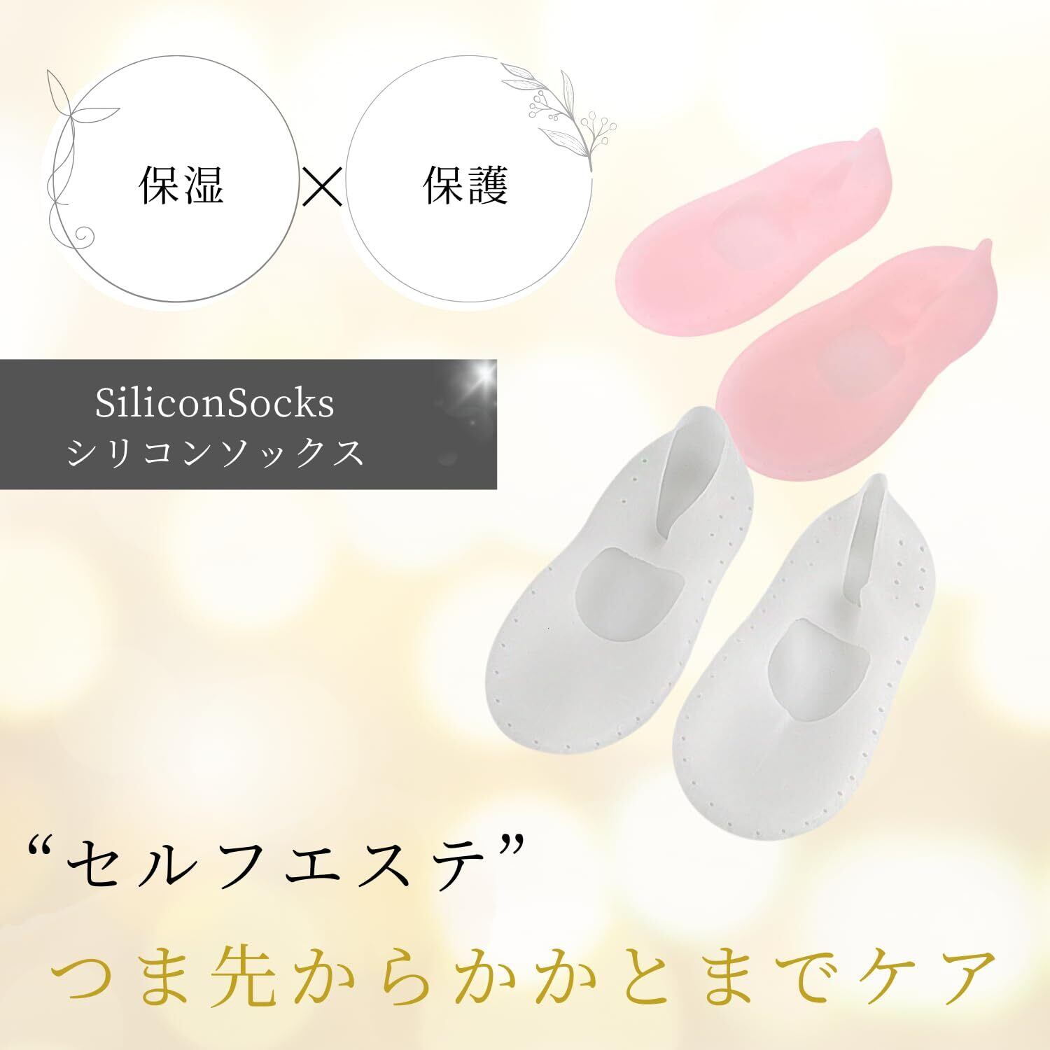 SWOKY 保湿ソックス シリコン 靴下 幅21cm×長さ10cm かかとしっとり つま先 (ホワイト, M)
